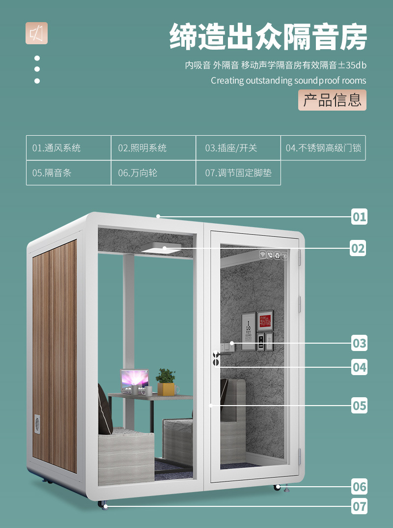 音博士室内防音室電話ボックス移動直播間静音室騒音低減多機能オフィス消音室