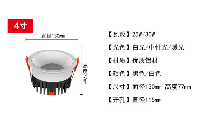 工場スポットledダウンライト埋め込み式25w三色ショールーム衣料品店補光5000k防眩天ダウンライト
