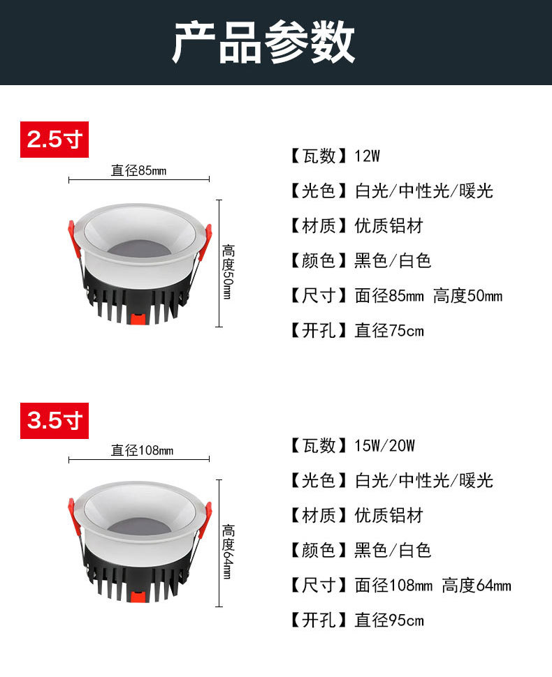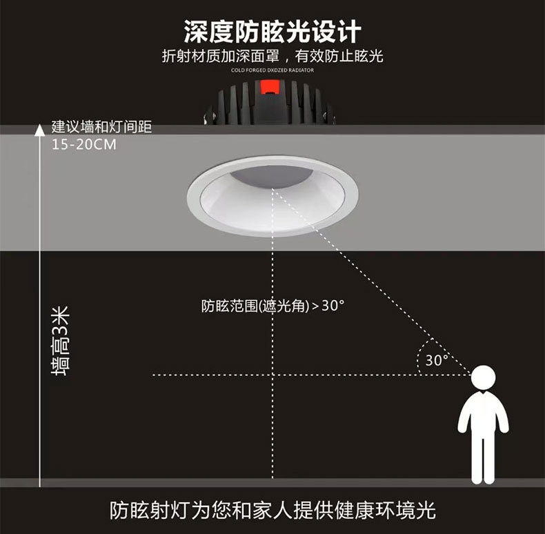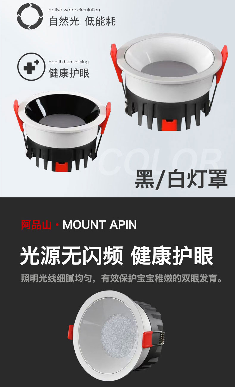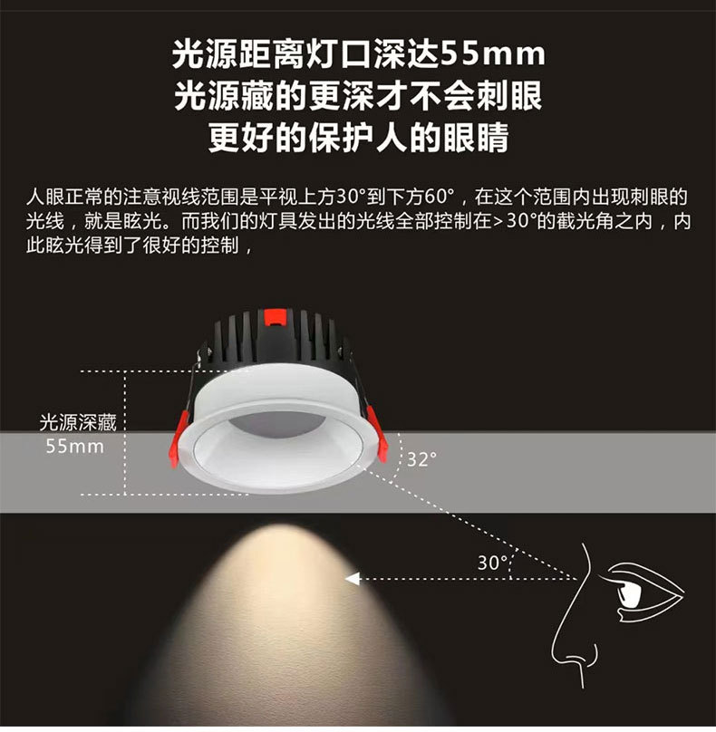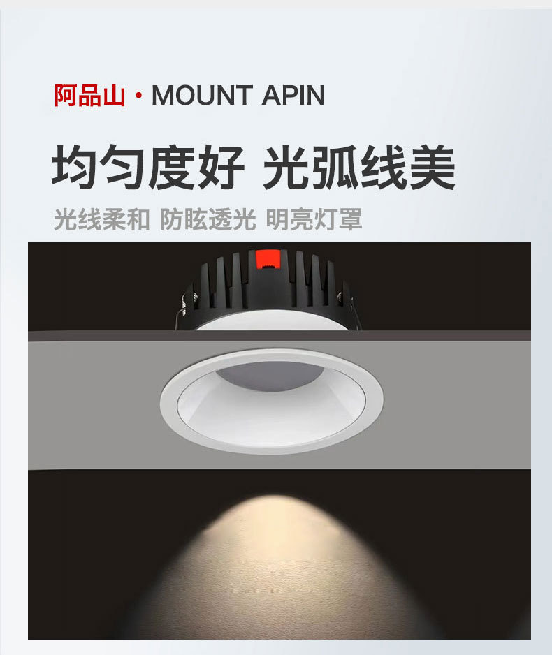 小山丘射灯嵌入式防炫光cob洗墙射灯客厅家用边框led天花灯射灯