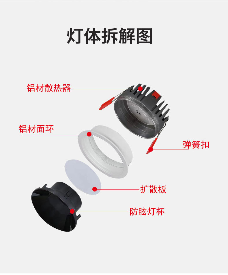 メーカー直販防めまい筒灯レンズモデルled無主灯埋め込み式乱視10w家装孔灯