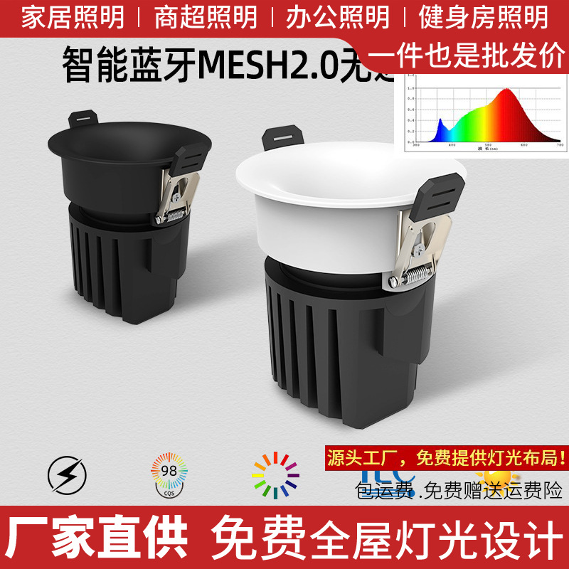 智能蓝牙2.0无极调光防眩射灯 免预埋无边框客厅护眼小山丘筒射灯