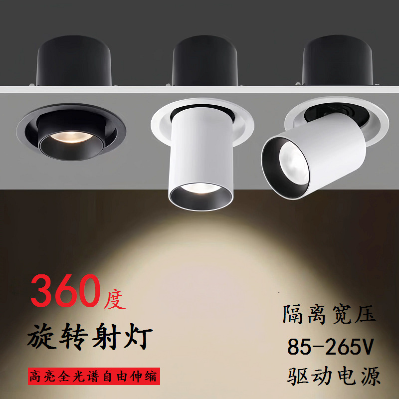 射灯可拉伸嵌入式射灯伸缩旋转调节商用超市服装店cob象鼻灯直播