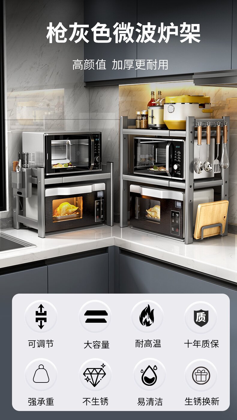 厨房微波炉架子置物架多功能支架多层家用烤箱台面电饭煲收纳架子