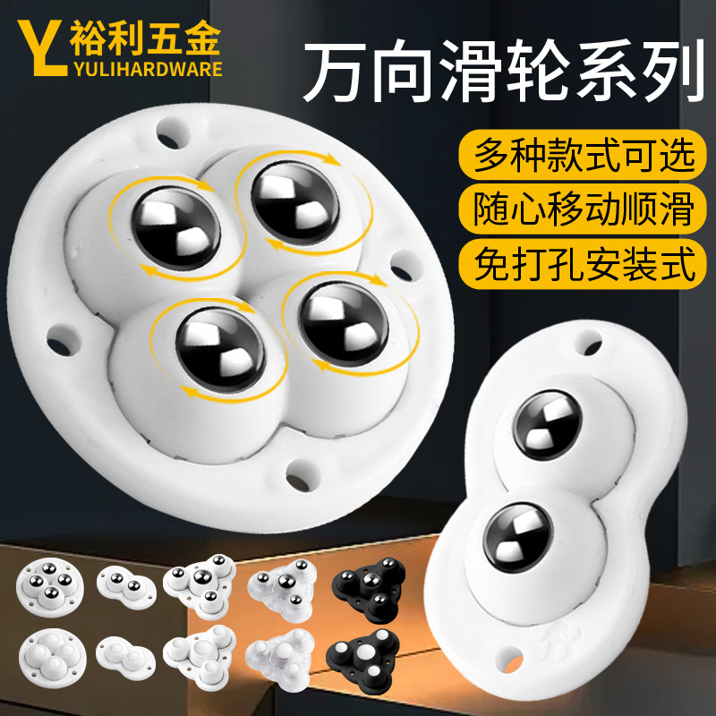 ボール自在車輪粘着式鋼珠ナイロン移動家具台座穴なしキャスター