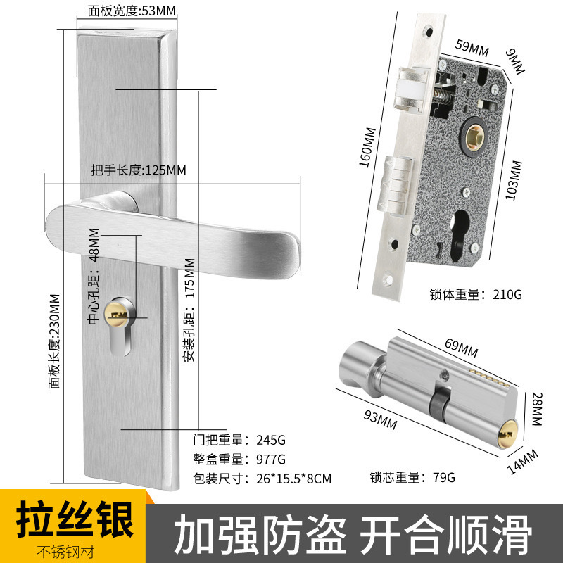 ステンレス室内木ドアロック寝室部屋ロック静音房ドアロック伸線家庭用機械ロック50穴距離