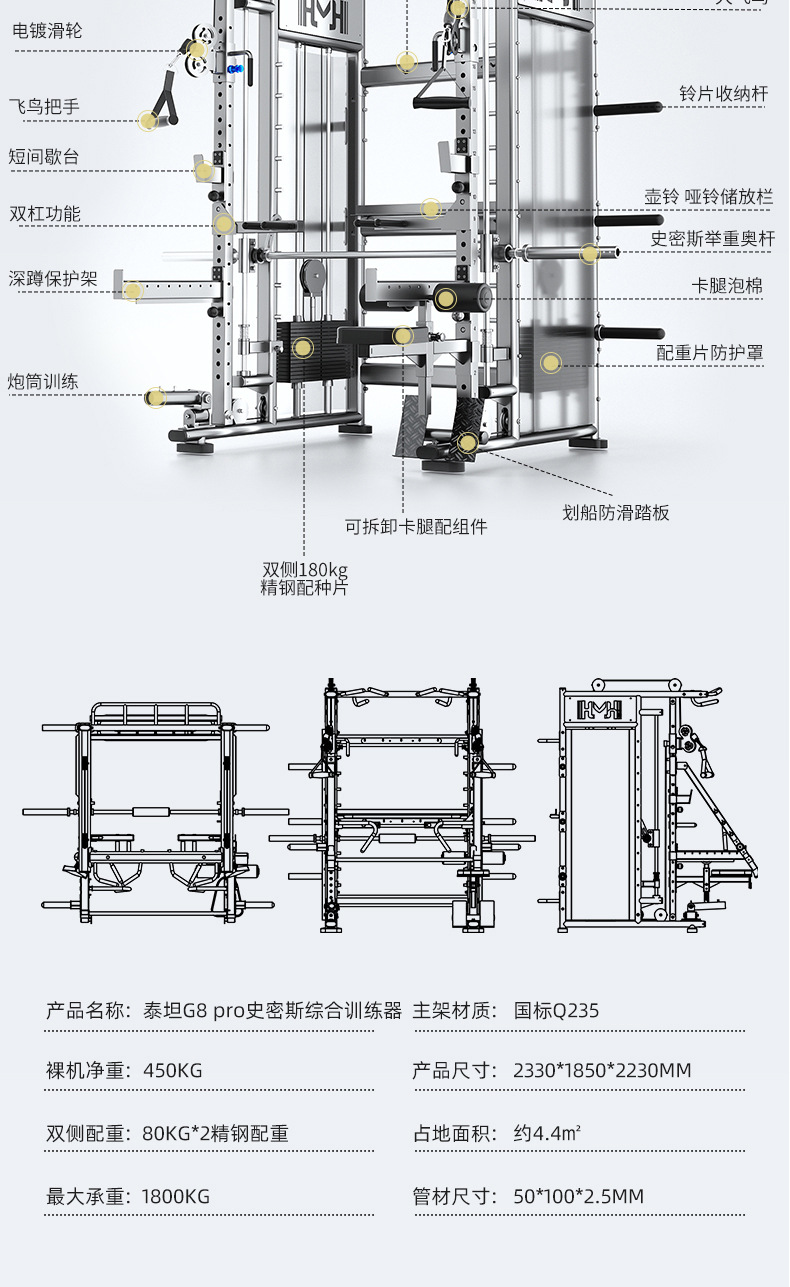 スミス機億マイ商用飛鳥龍門架臥推深しゃがん室内家庭用総合フィットネス器材