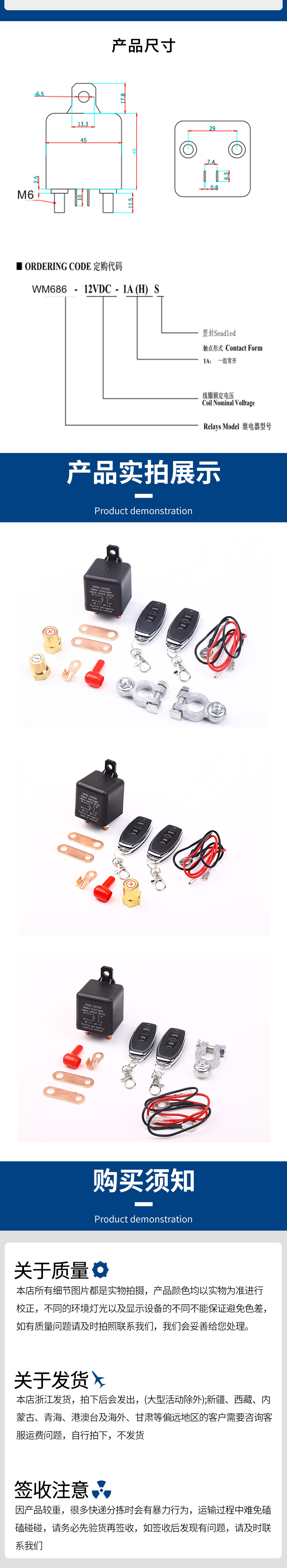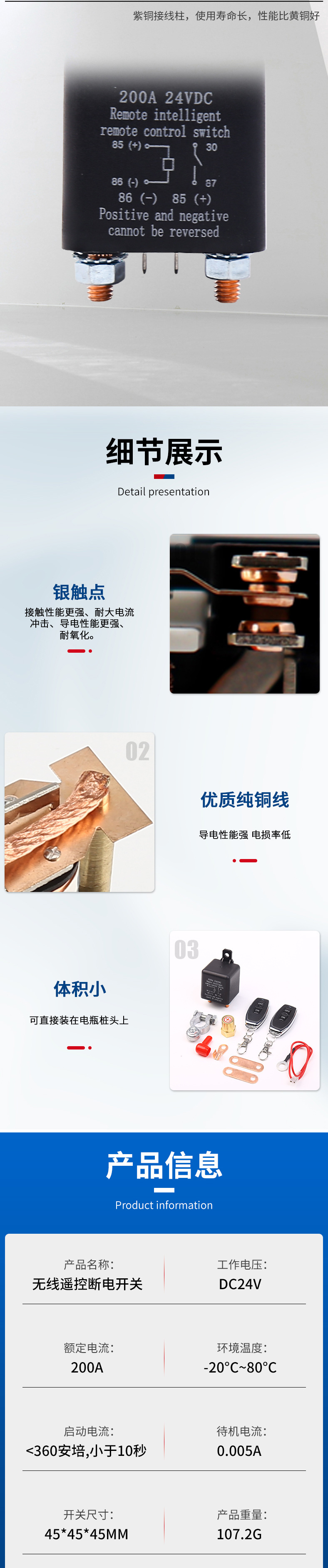 リモコン付き車載用24V車用リレー200A始動電源保護電線無線リモコン電源遮断スイッチ