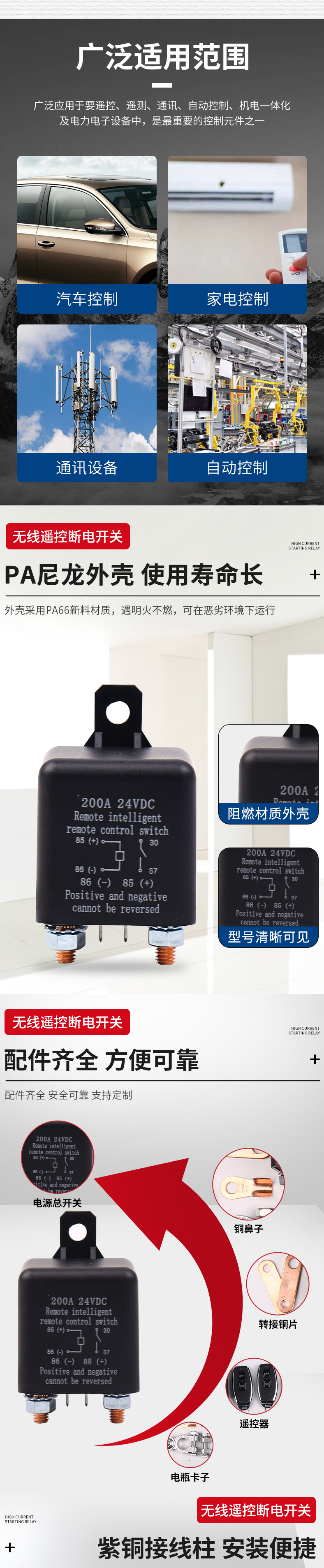 智能遥控继电器断电开关12V 120A 200A,用于汽车卡车摩托通用