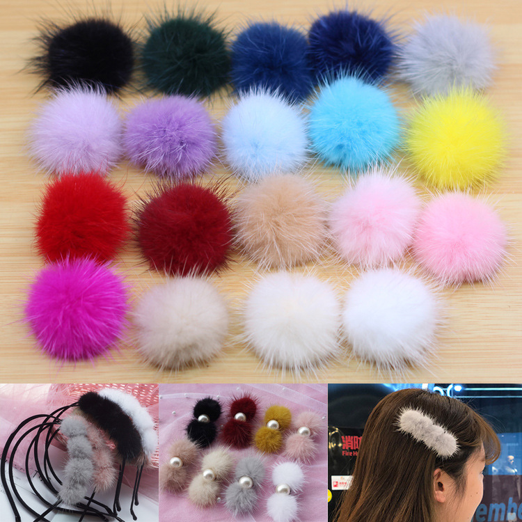 4センチミンクの毛飾り部品diyヘアピン材料毛玉手作りヘアバンド髪飾りブローチ