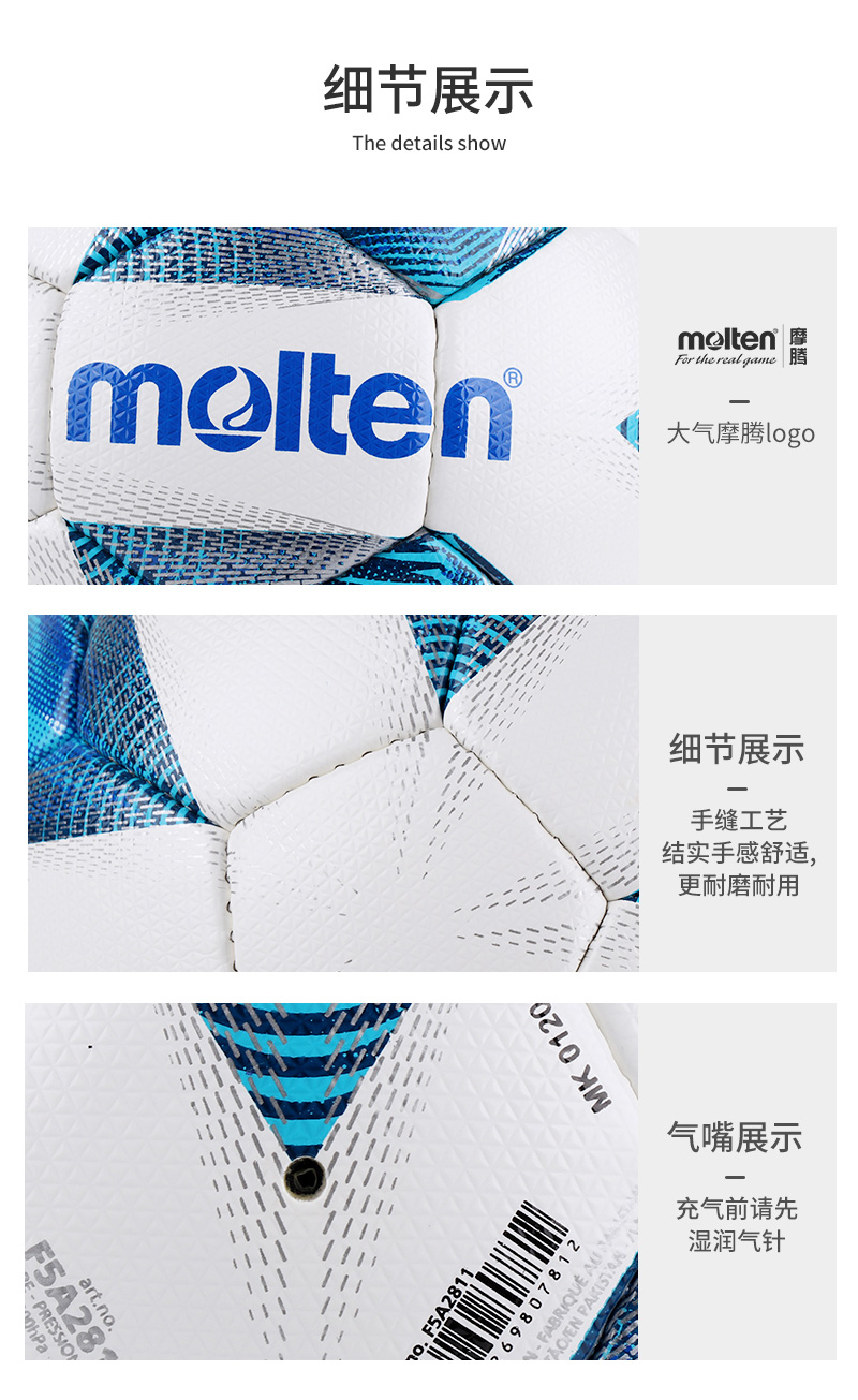 Molten摩腾足球儿童3号4号球 成人运动户外训练比赛足球5号球正品