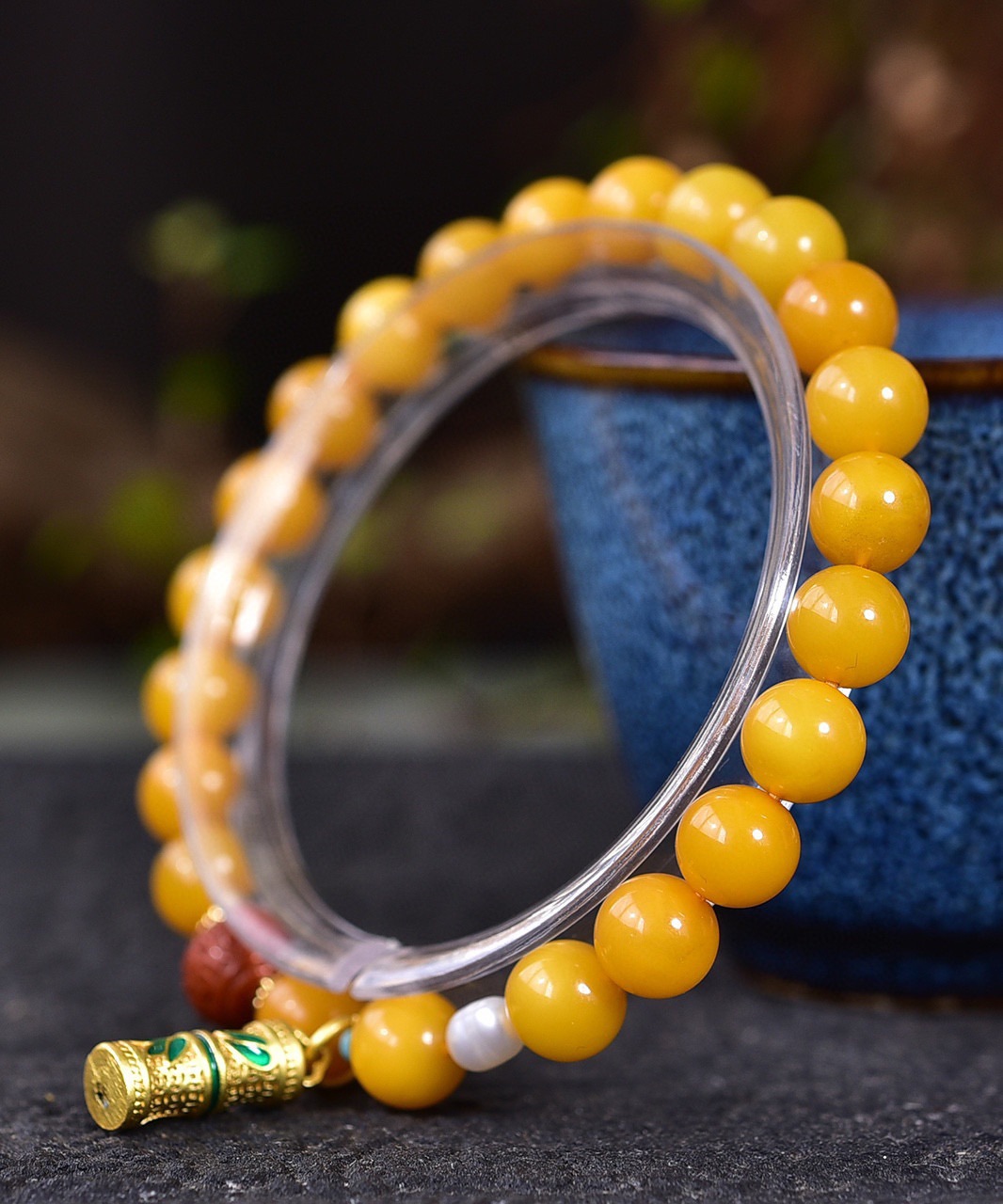 天然老蜜ろう三輪手串満蜜鶏油黄老蜜ろうサイズ5.3ミリ重さ15グラム