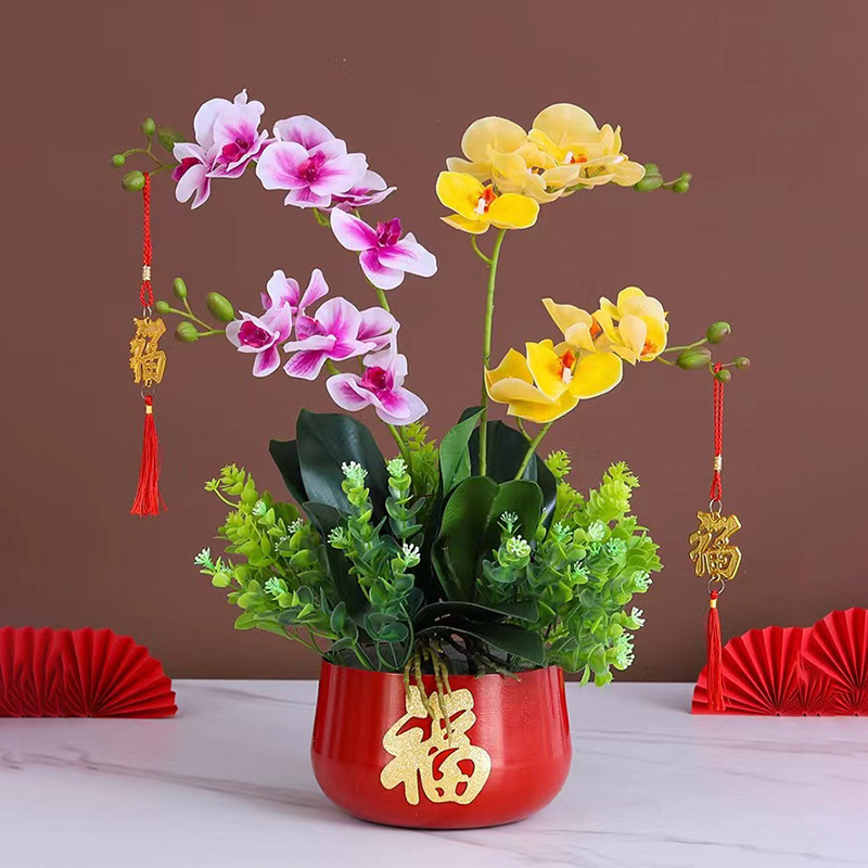 胡蝶蘭盆鉄芸植木鉢花器北欧花棚冬青銀柳盆器緑植シミュレーション花新中国式置物