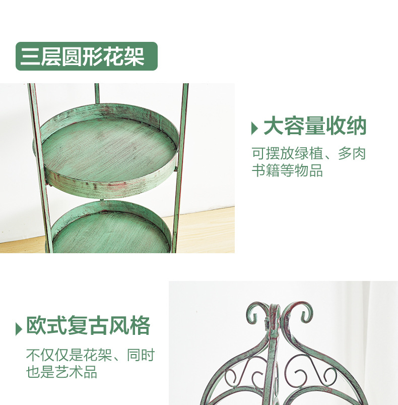エデン対外貿易ヨーロッパ式鉄芸レトロ緑床置き式三階棚ベランダ庭園客間花棚棚棚棚