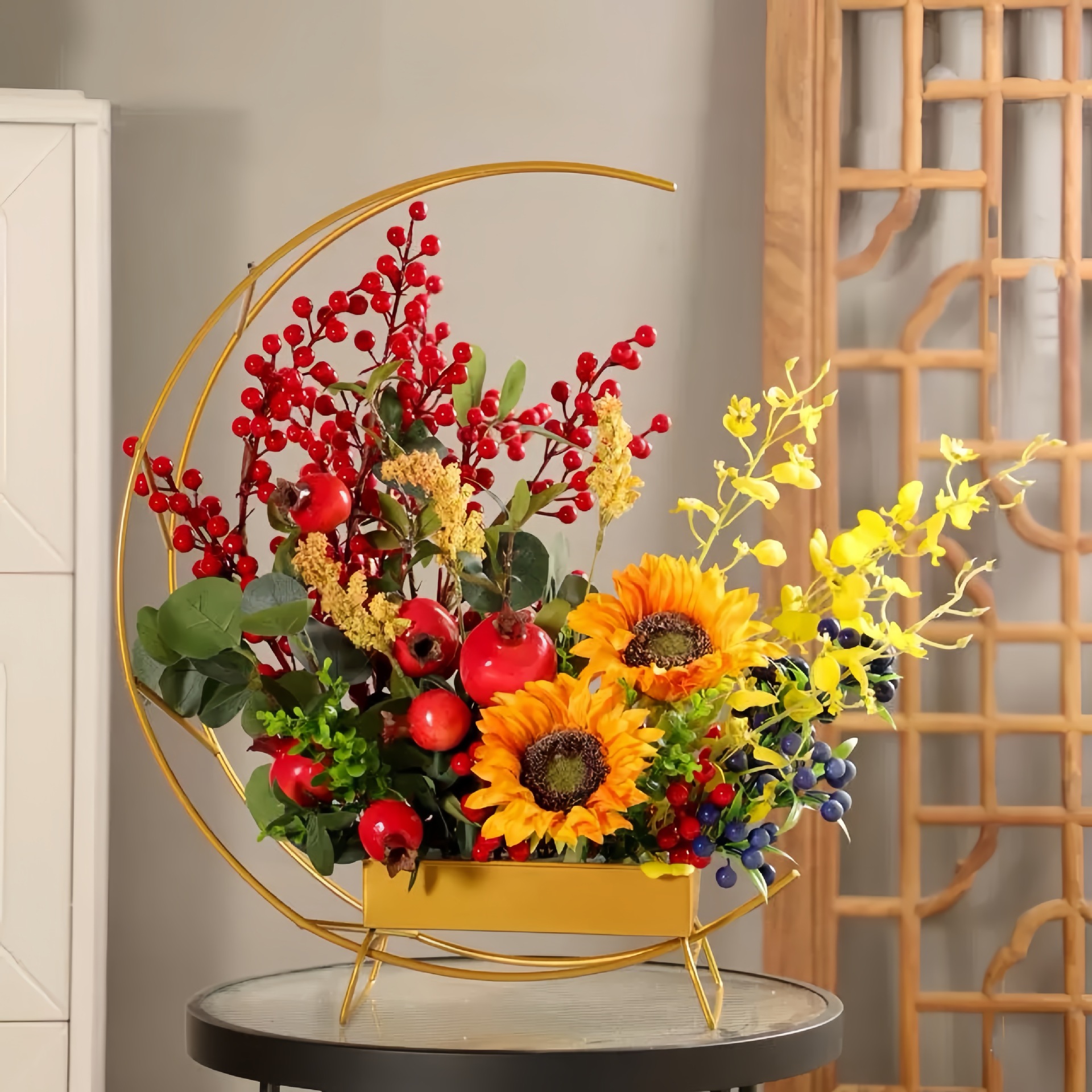 新年福桶福盆冬青銀柳年夜花生け花鉢花器金属金色鉄芸抱っこ桶花桶