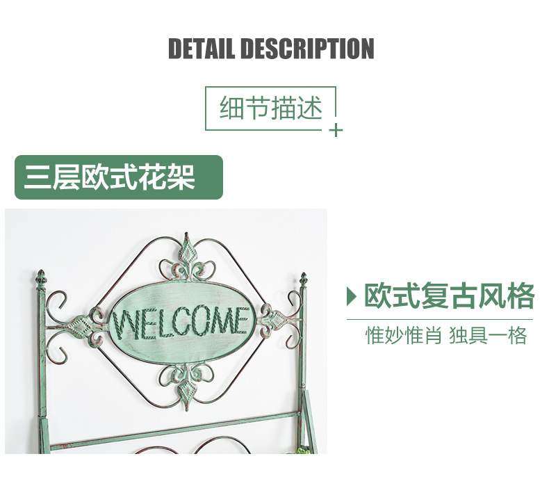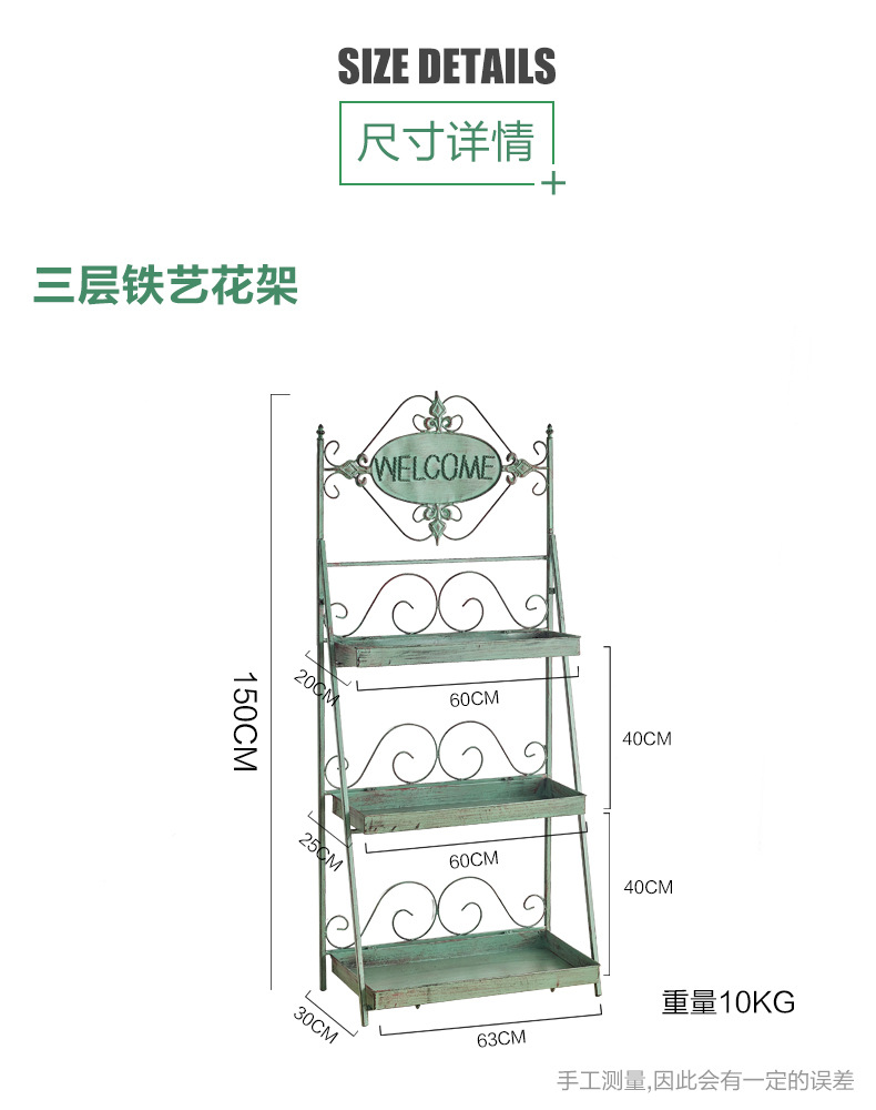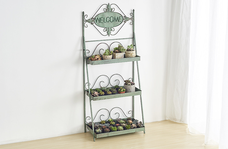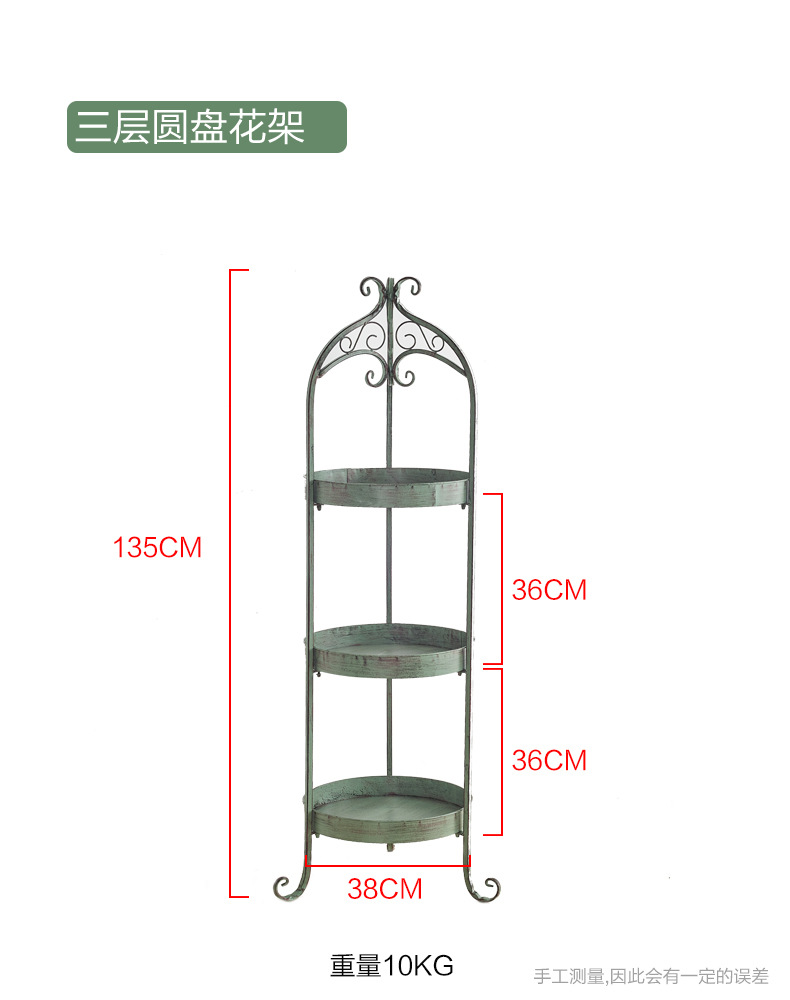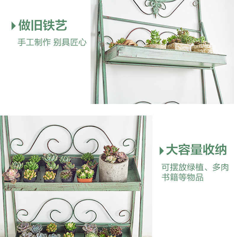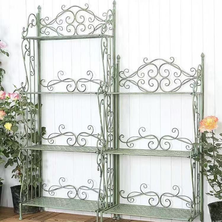 美式乡村复古铁艺三四层花架室内户外花园阳台庭院花盆架置物搁架