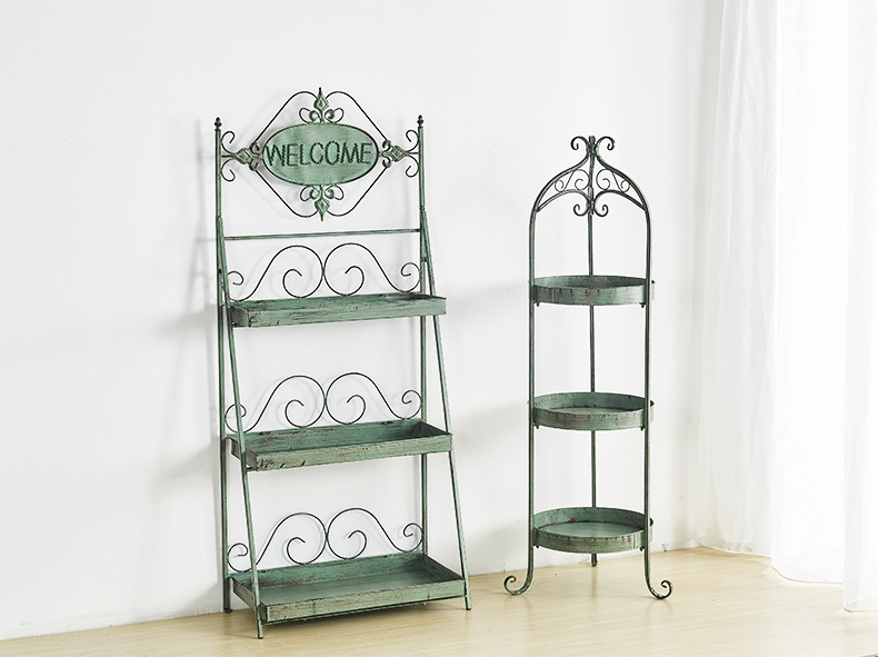 アマゾンの爆発的なアメリカの田舎のレトロな鉄芸三階の花架ベランダの屋外ファッション店舗の装飾展示棚