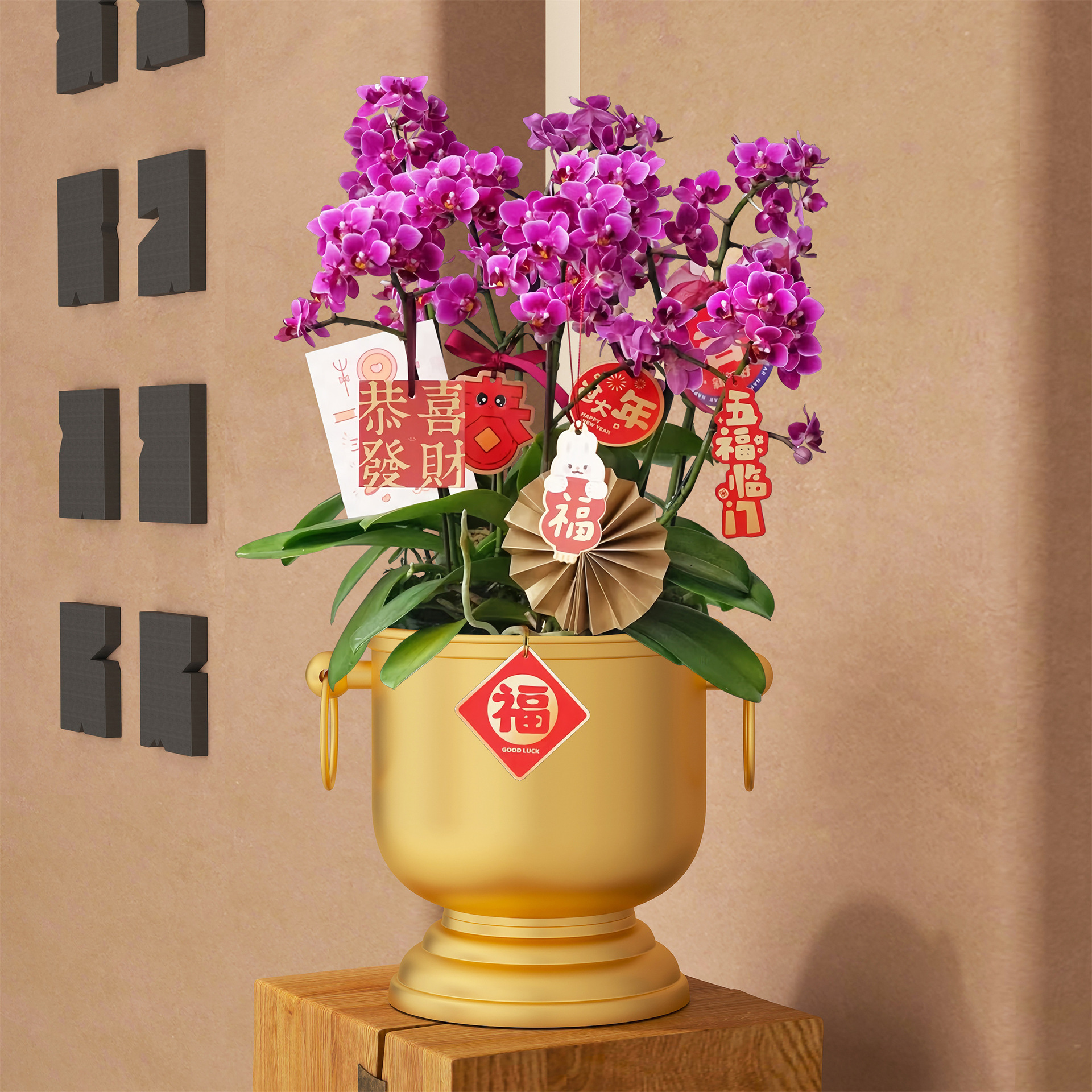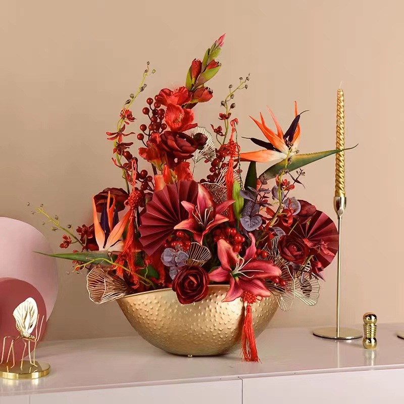 新年胡蝶蘭植木鉢花器冬青銀柳年夜花生け花福桶福盆金属金色鉄芸盆器