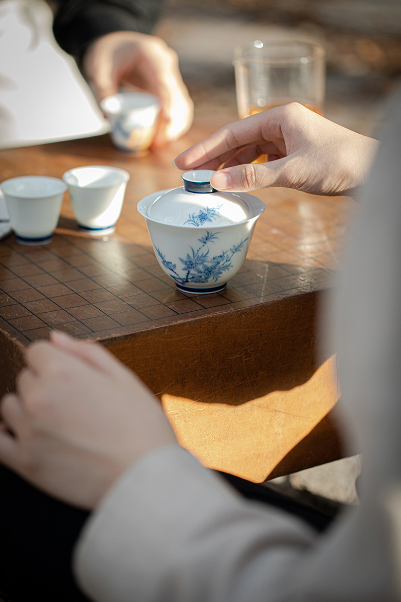 墨己玉泥甘白手描きセット茶器家庭用茶器ギフトボックス秋水蘭蓋碗セット