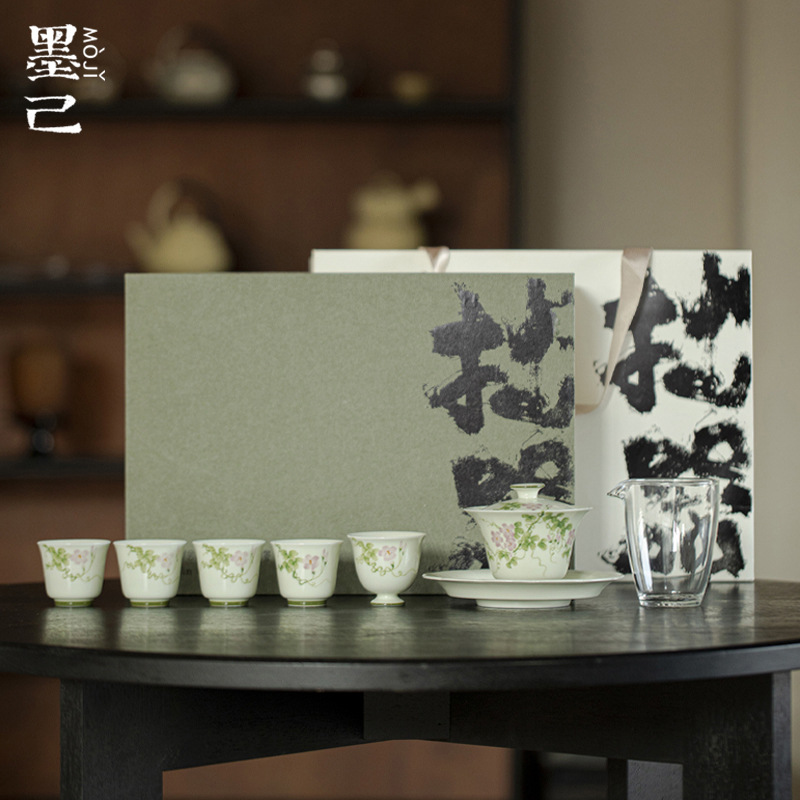 墨己の茶器のセットは昔のお土産の工夫茶器の家庭用蓋碗セットの陶磁器のギフトボックスの茶器です。