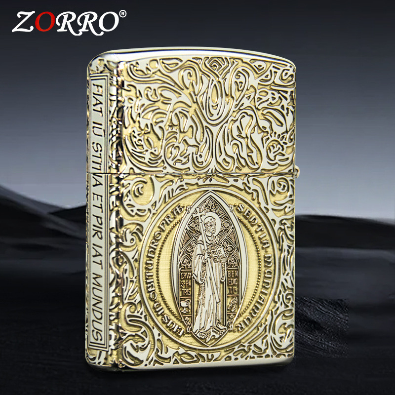 本物の ZORRO ゾロ 902 クロームメッキ真鍮セインツカン 2 色灯油ライター彫刻卸売ブラインドボックス
