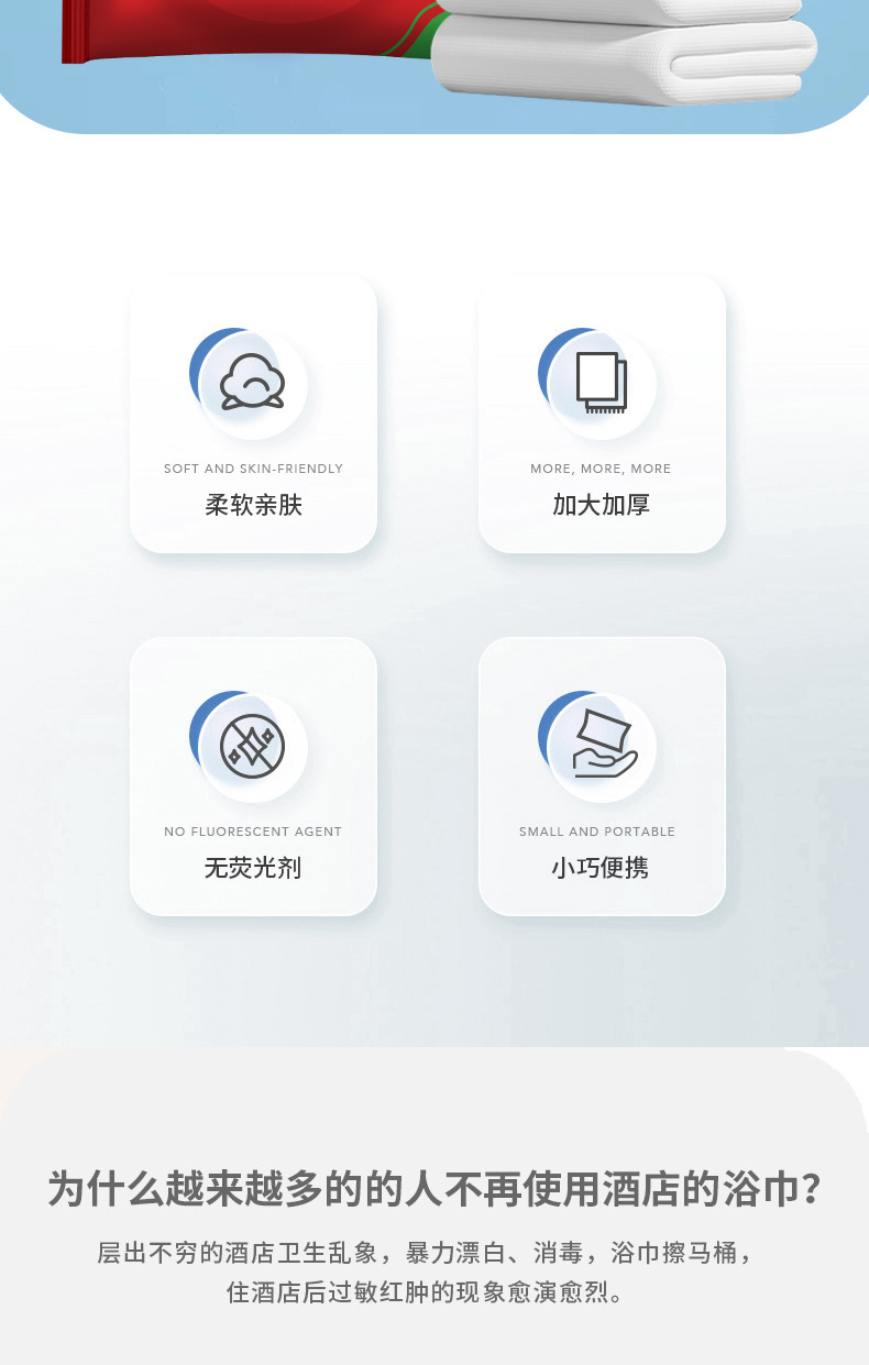 使い捨てバスタオル旅行は使い捨てタオルを単独で包装して、旅行ホテルの便利な用品を厚くします。