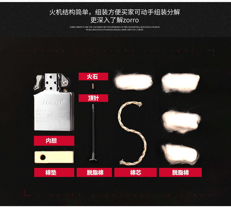 ゾロzorroオリジナル火石綿芯卸売灯油ライター専用部品正規品ライター綿糸