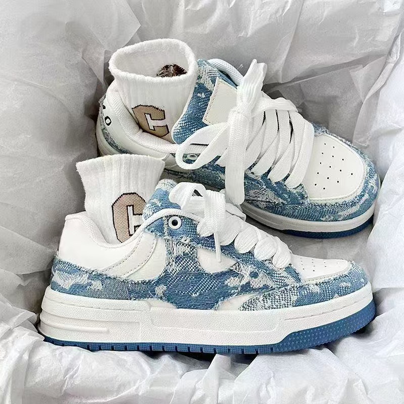 牛仔拼色板鞋女春秋新款休闲运动鞋透气耐磨小白鞋女鞋