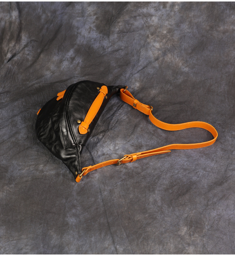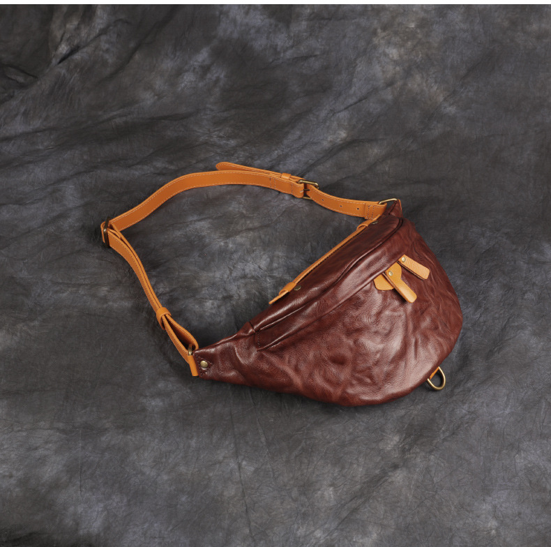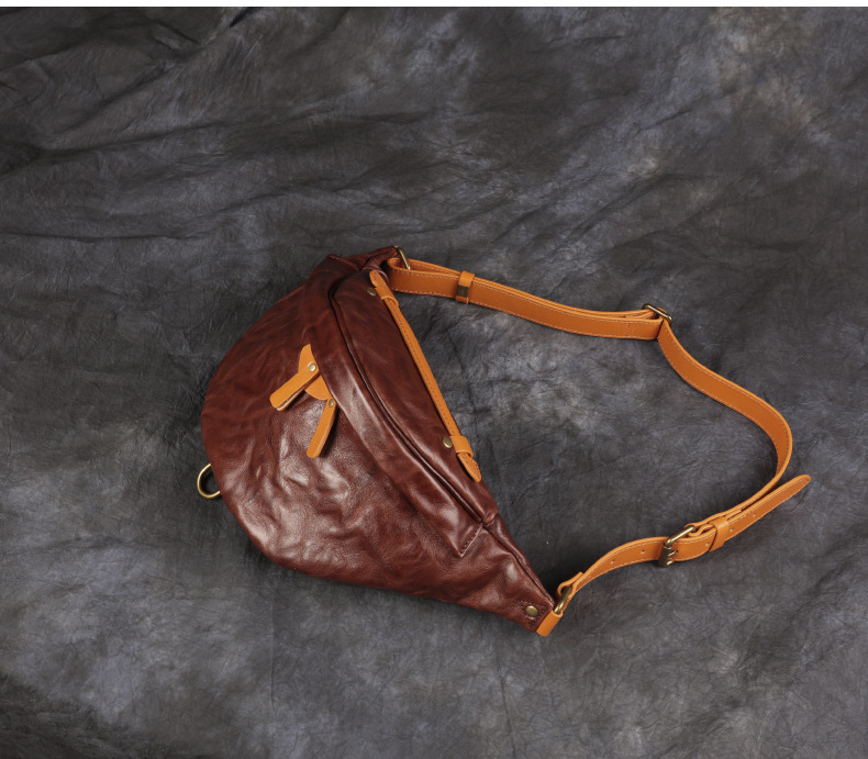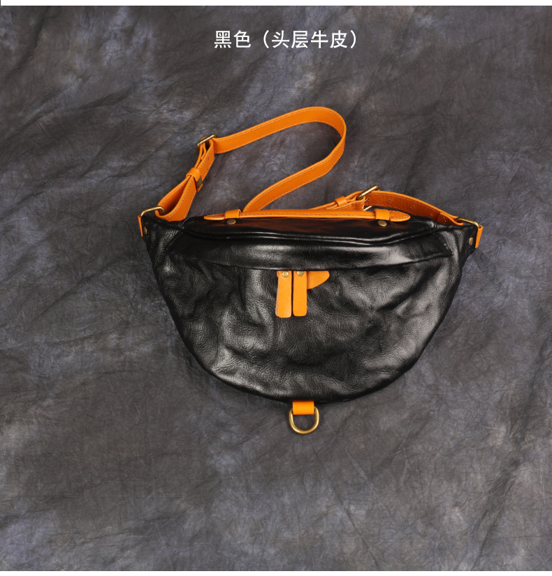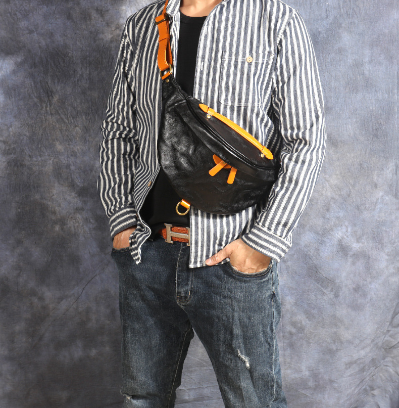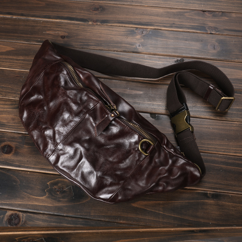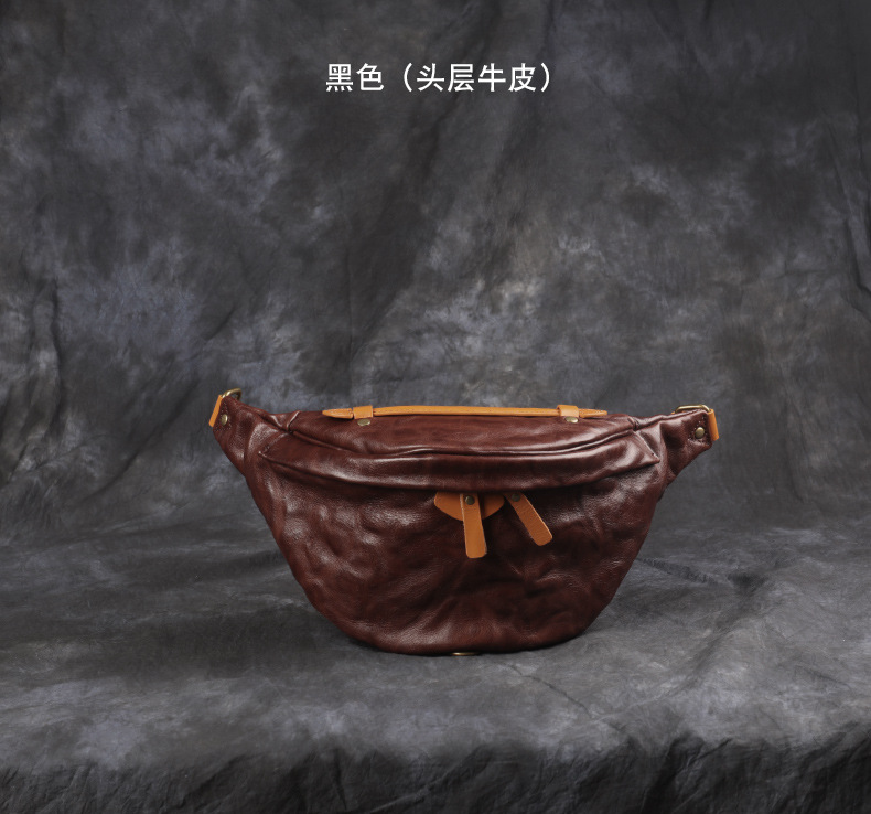 卸売り新型男性携帯バッグ大容量ウエストバッグ真皮胸バッグ頭層牛革商売ウエストバッグ斜め掛けバッグ