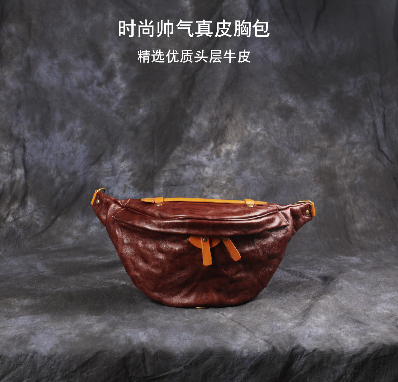 クロスボーダー真皮男性大胸包植なめし革斜めショルダーバッグ頭層牛革アウトドアカジュアル復古シワ