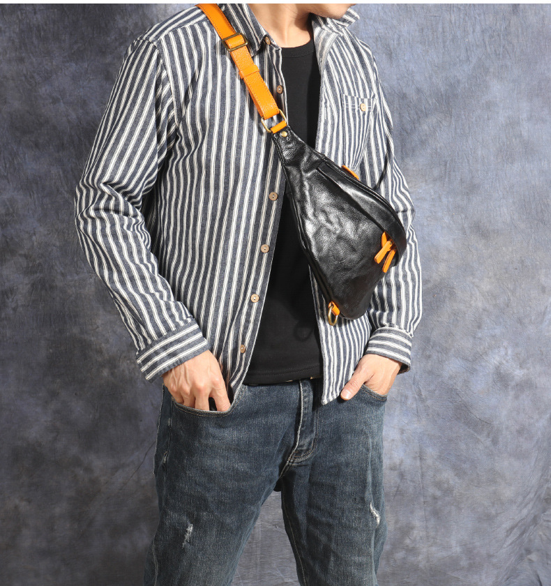 新商品のレトロな男性の胸の包みはなめして頭の層の牛革を植えて斜めに包みます。