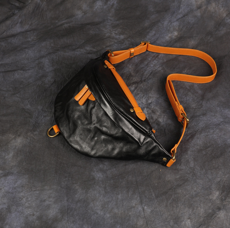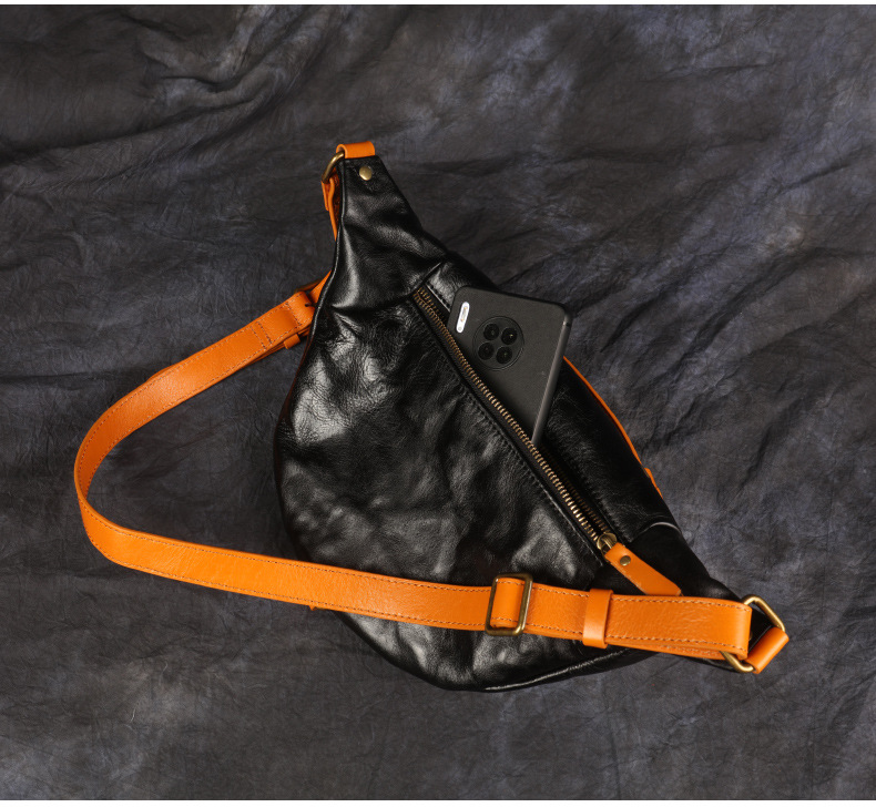 クロスボーダー植なめし本革携帯電話ウエストバッグアウトドア通勤斜め掛け胸バッグトップ層牛革高級感百合潮リュックサック