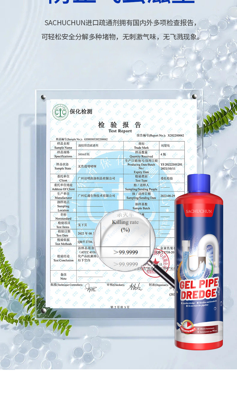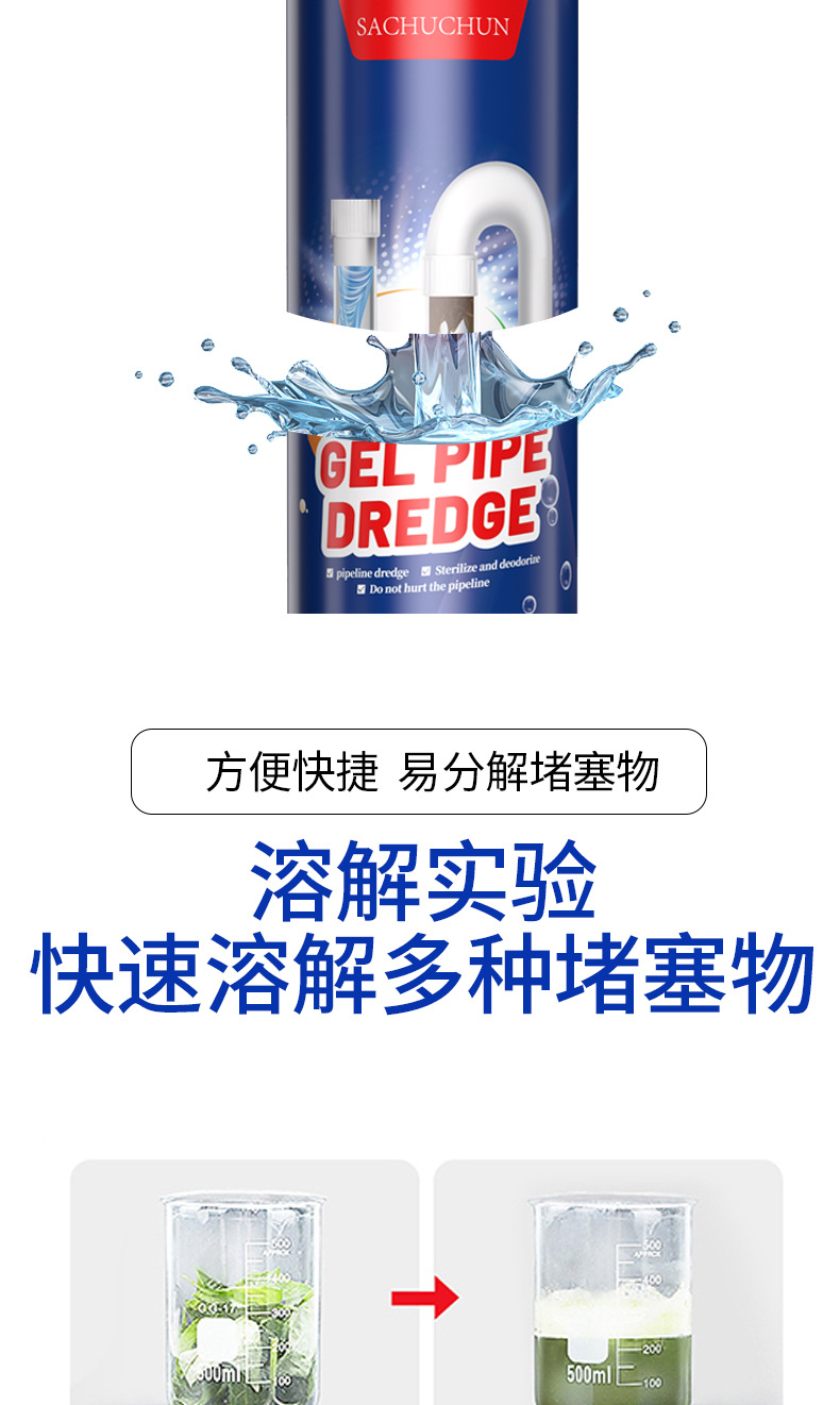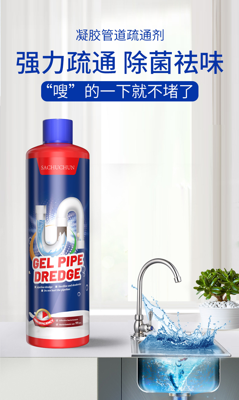 パイプ浚渫剤は下水道の配管、キッチンの油汚れ、トイレ、床排水口の詰まりを解消し、消臭効果があります。