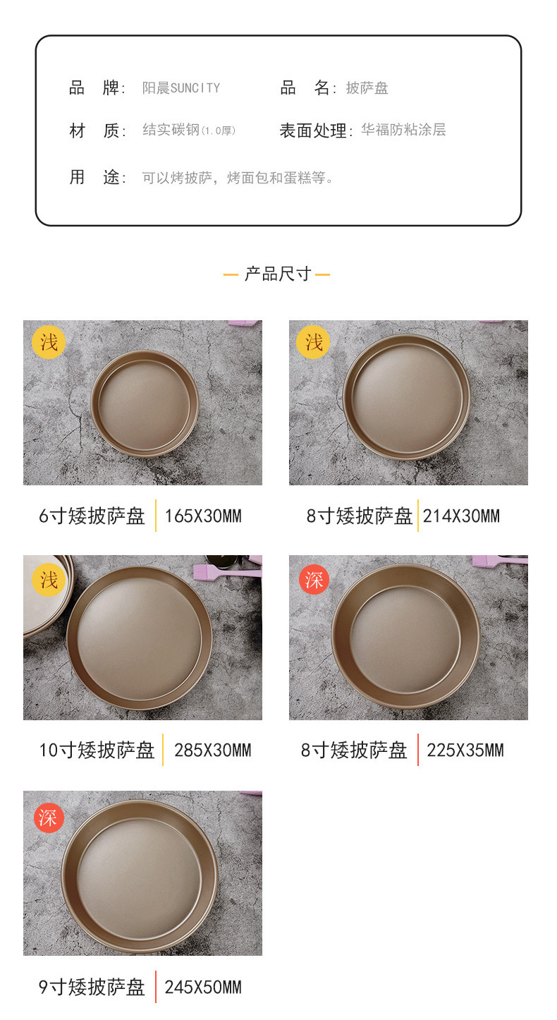 不粘披萨盘6寸浅边 铝合金加厚加硬加深比萨盘 烘焙模具