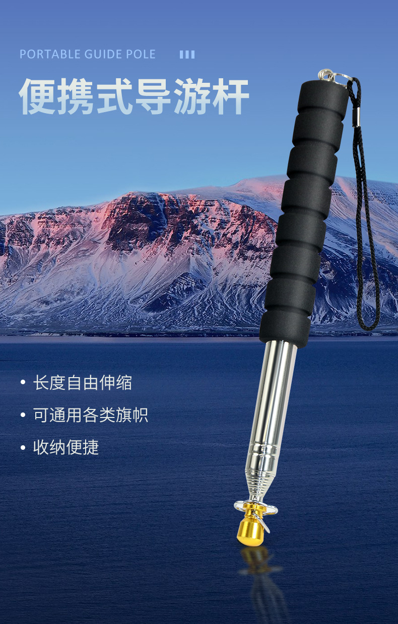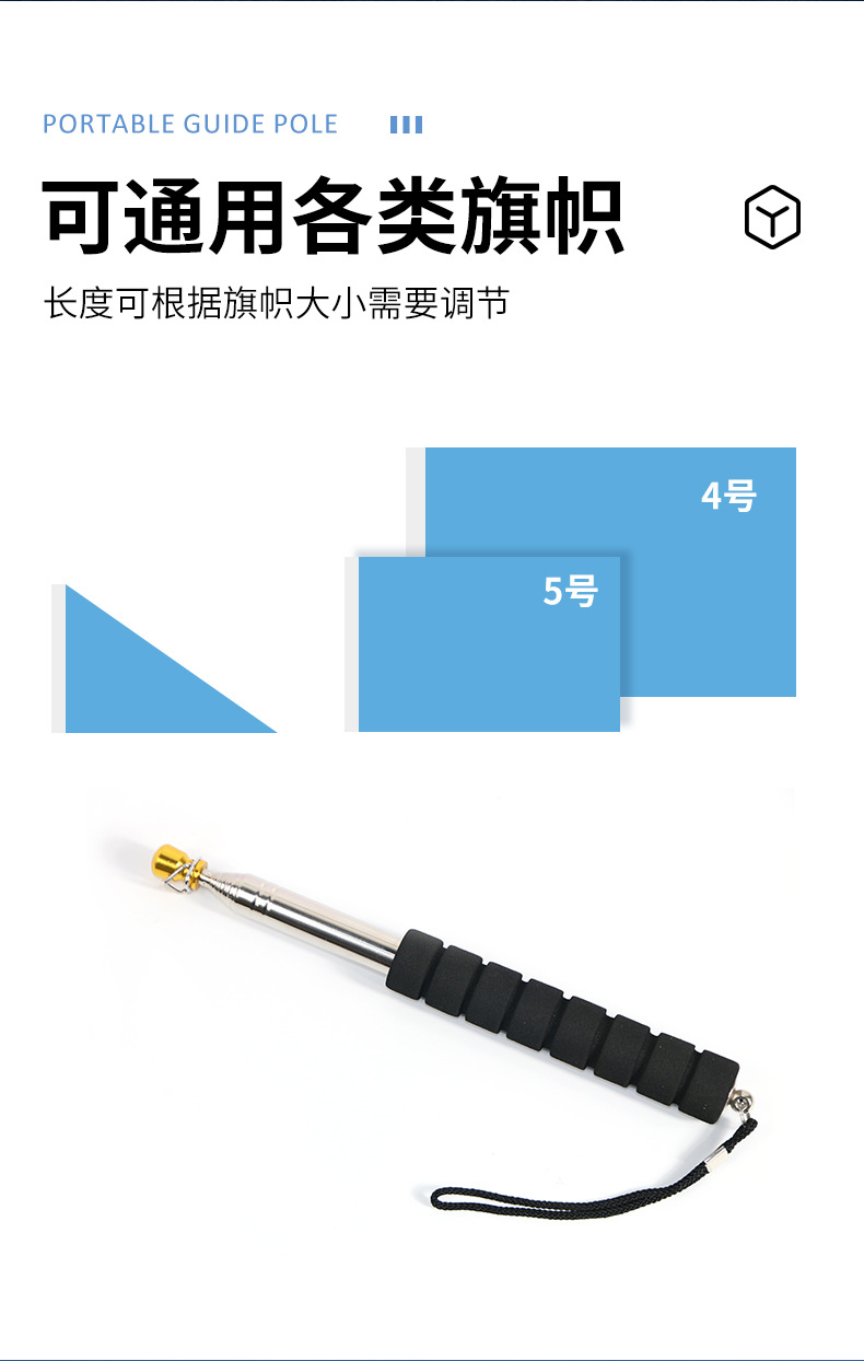 导游旗杆可伸缩手持加固定2米旗杆1米户外加粗收缩旗杆3米教鞭2.5