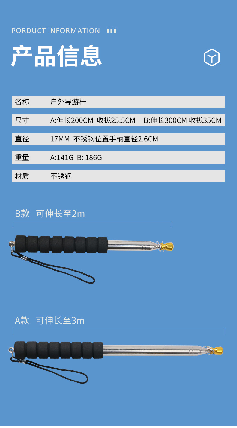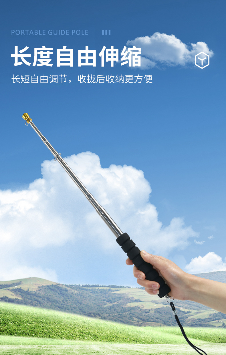 源メーカーのガイド棒ステンレス伸縮旗棒屋外1.6メートル3メートル長伸縮指導棒教育鞭