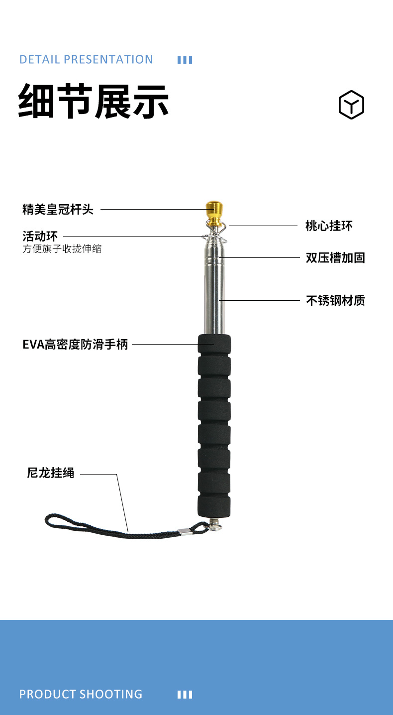 伸缩导游旗杆手摇旗杆不锈钢伸缩教鞭指读棒伸缩工具源头工厂