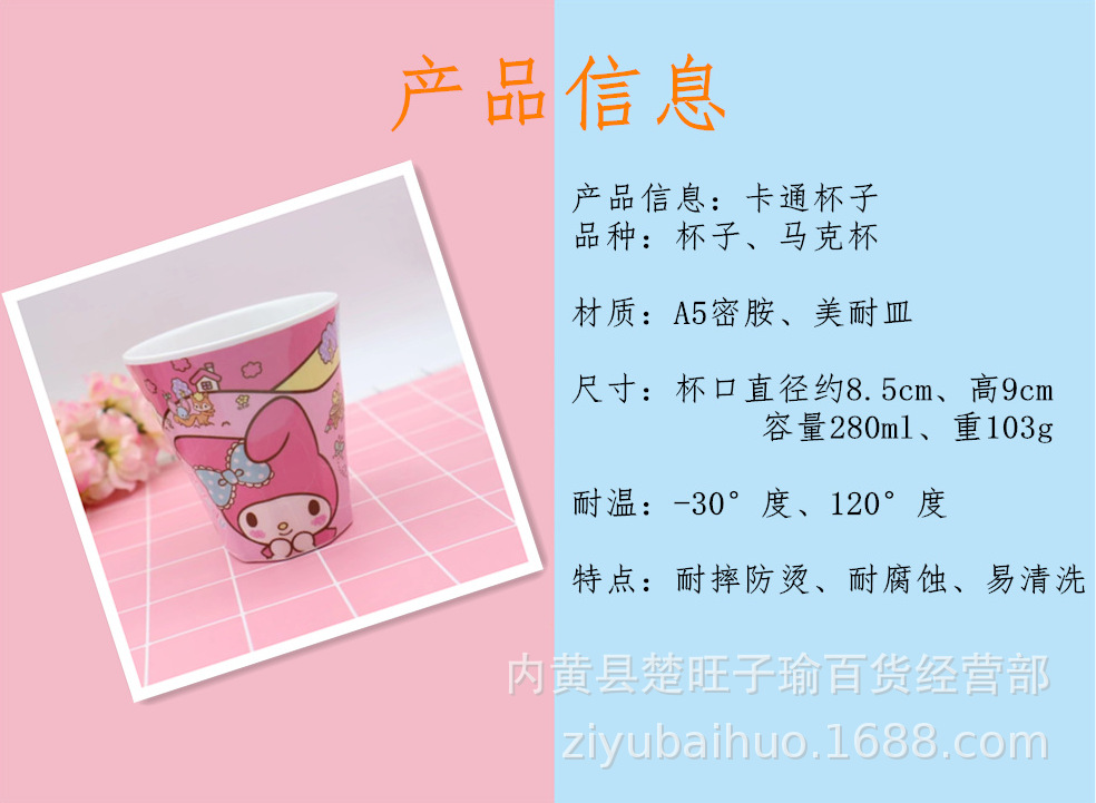 赤ちゃんのコップのかわいい漫画の子供のメラミンは転んで幼稚園の少女の子供に耐えられます。