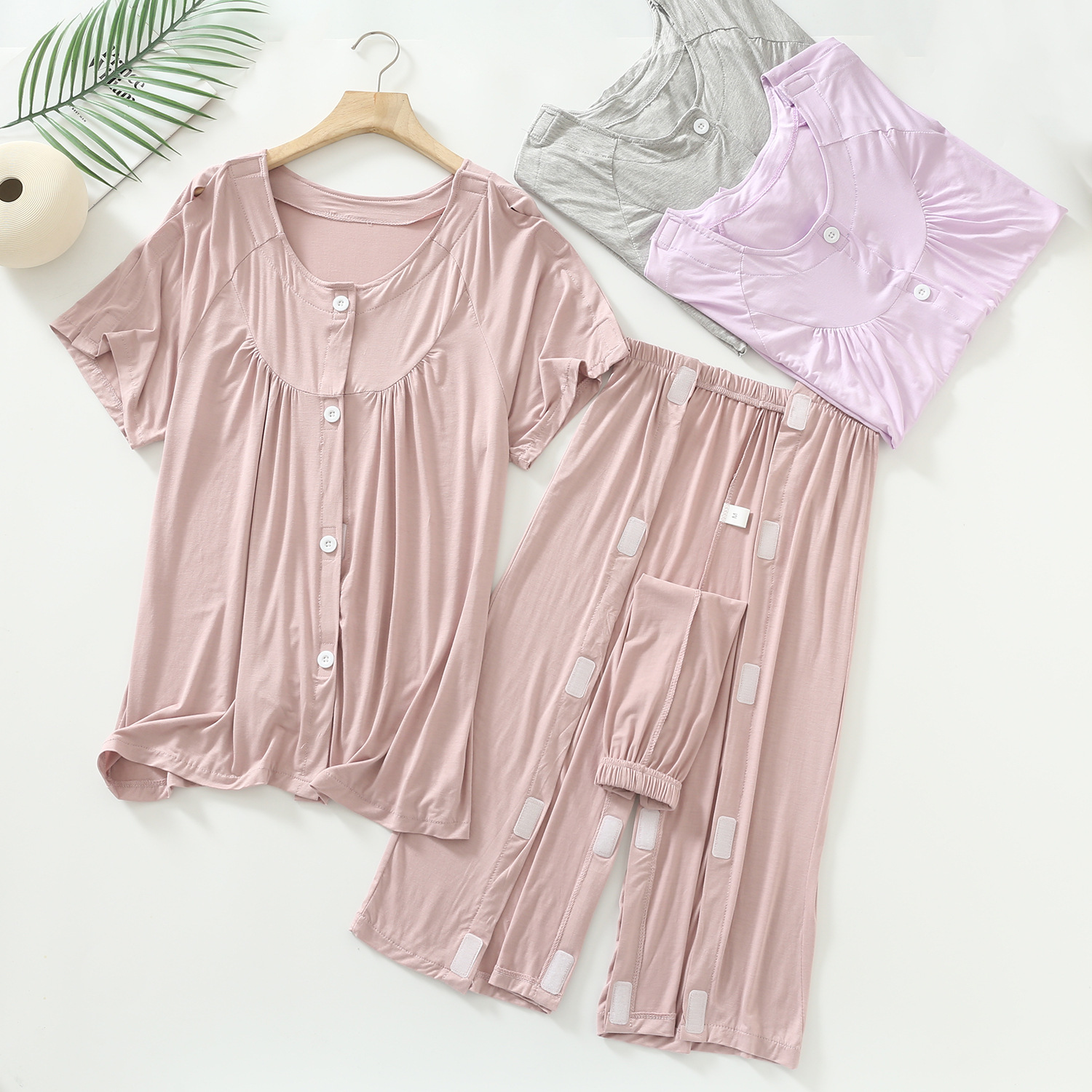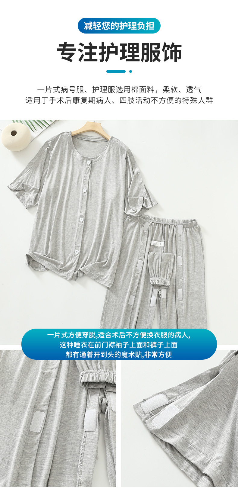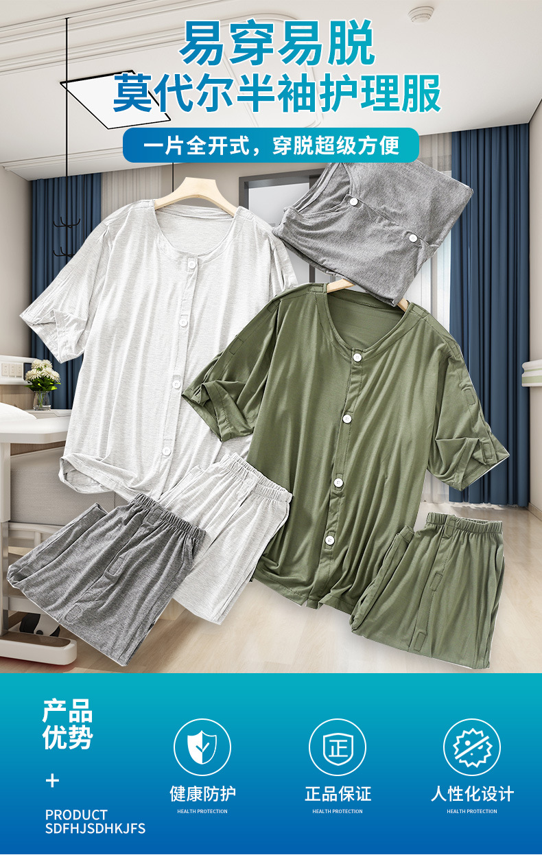 夏の患者の看護服は脱着しやすい半袖氷糸中高年医療服骨折服蚊よけ