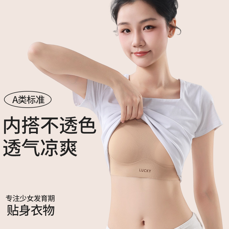 夏季无痕运动内衣女大童防震背心发育期初中高中生学生粉底液少女