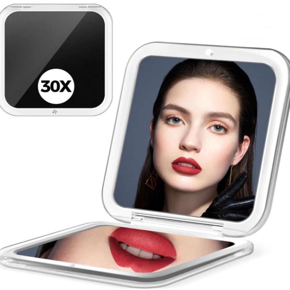 跨境30倍放大镜旅行用便携手持化妆镜可折叠随身轻便口袋补妆镜子