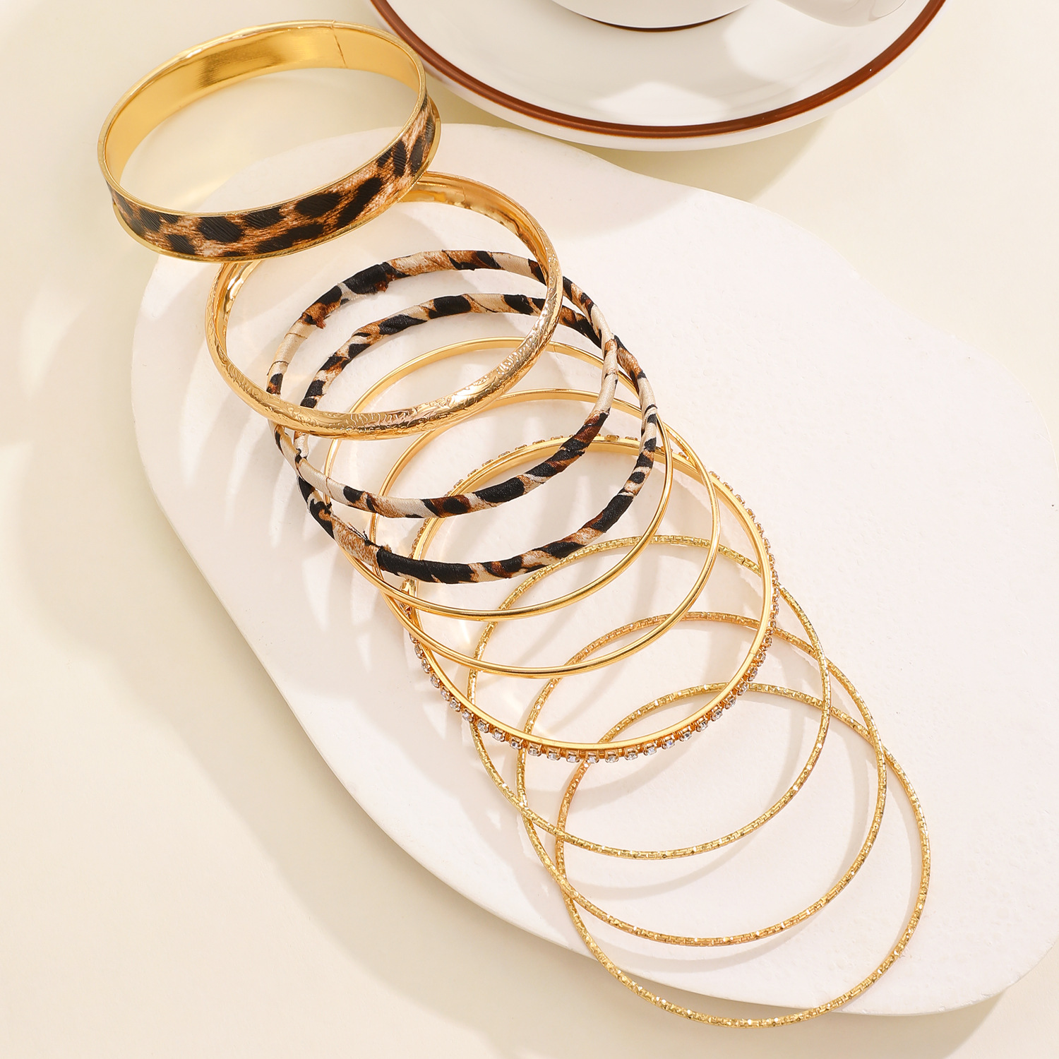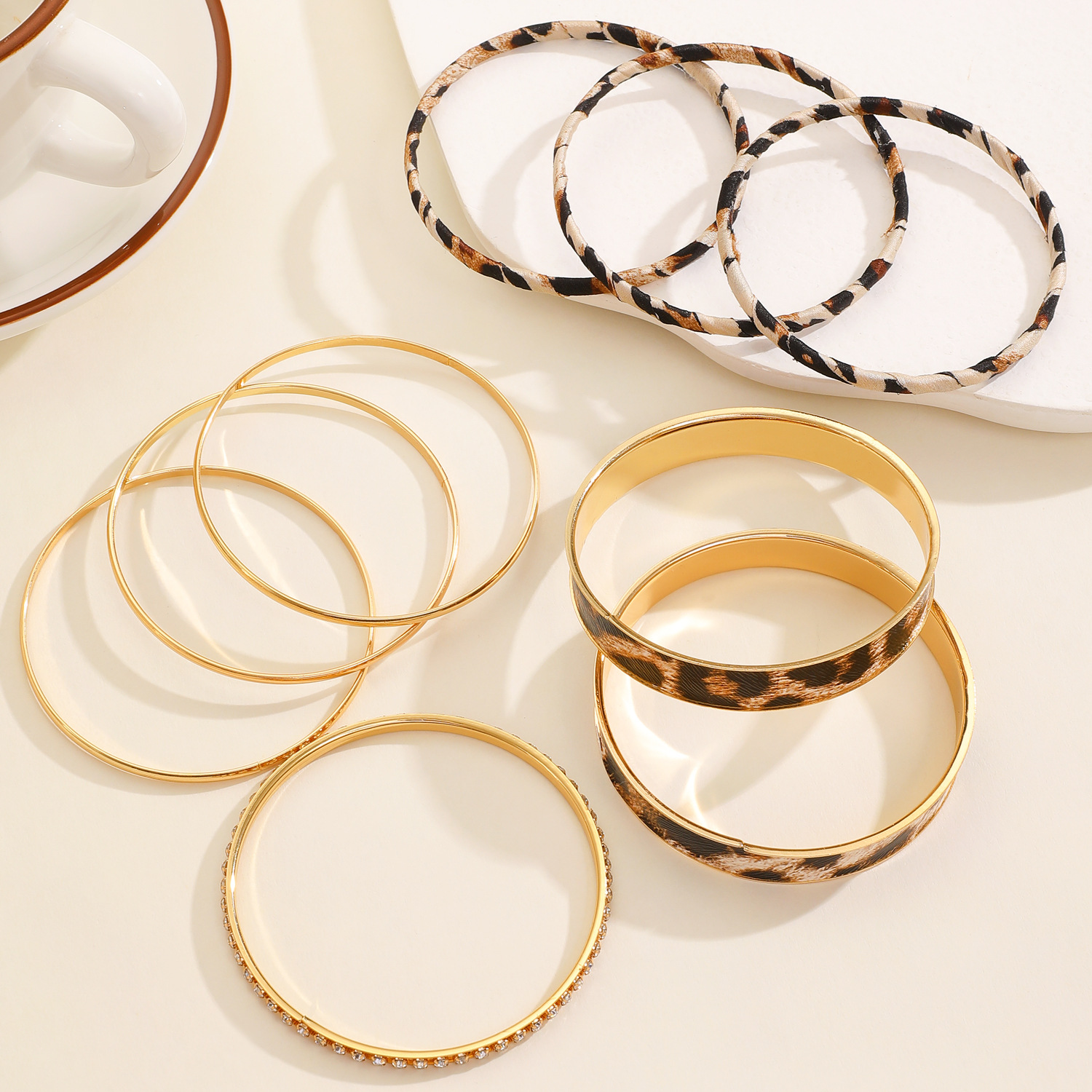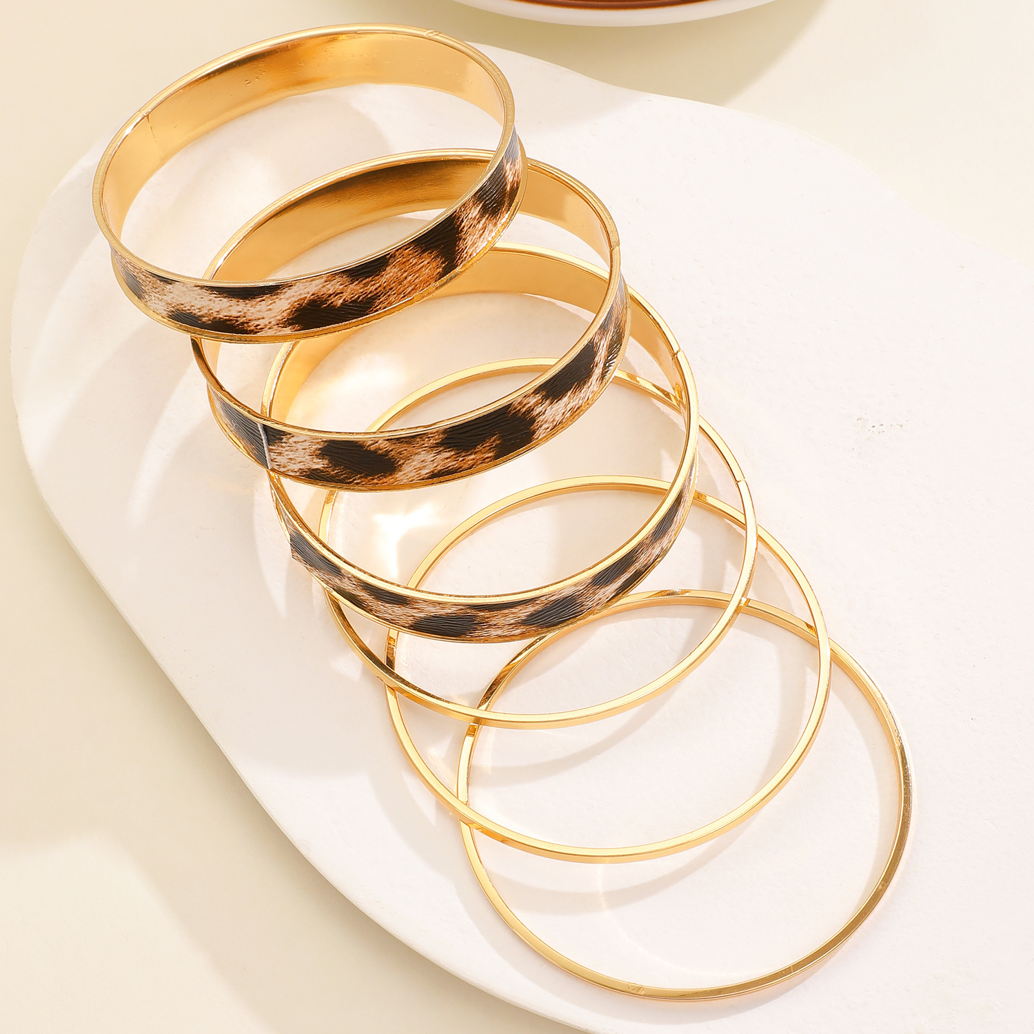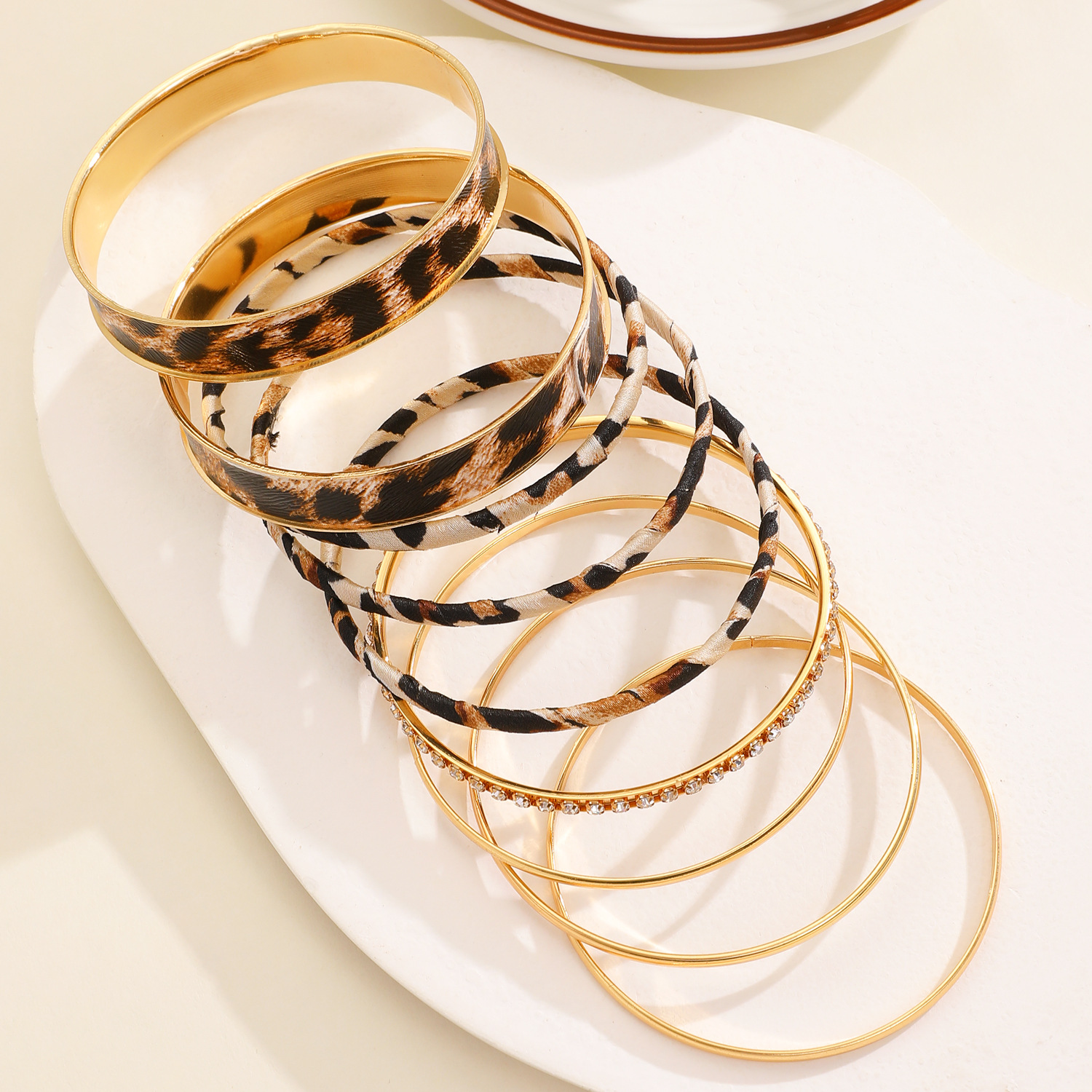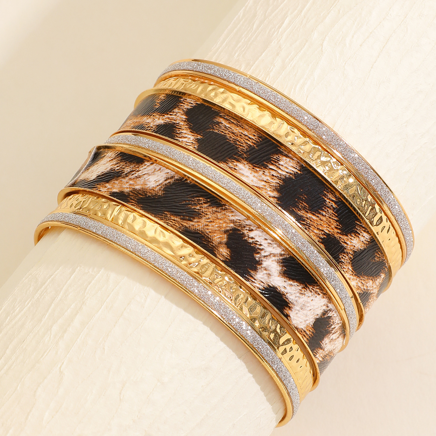 欧美跨境货源辣妹甜酷豹纹手镯光面叠戴手环套装街头潮流小众饰品