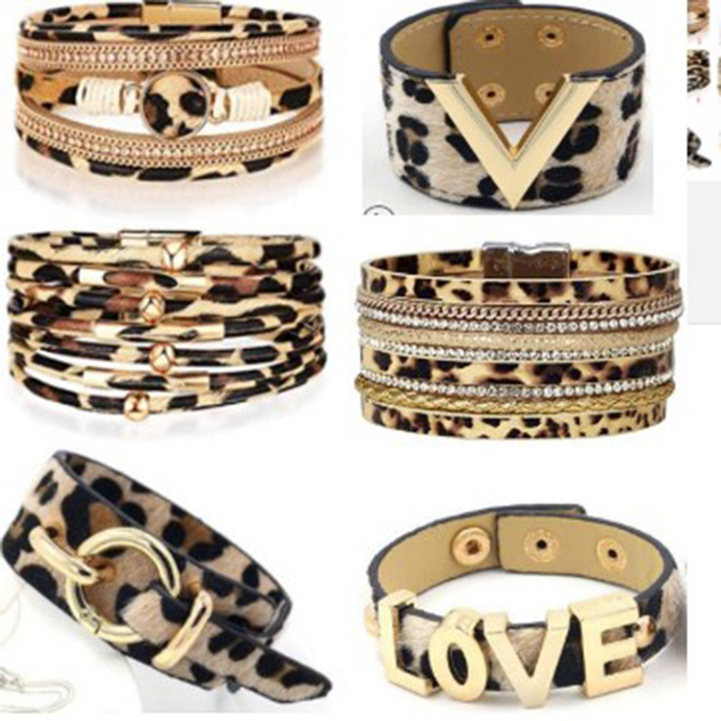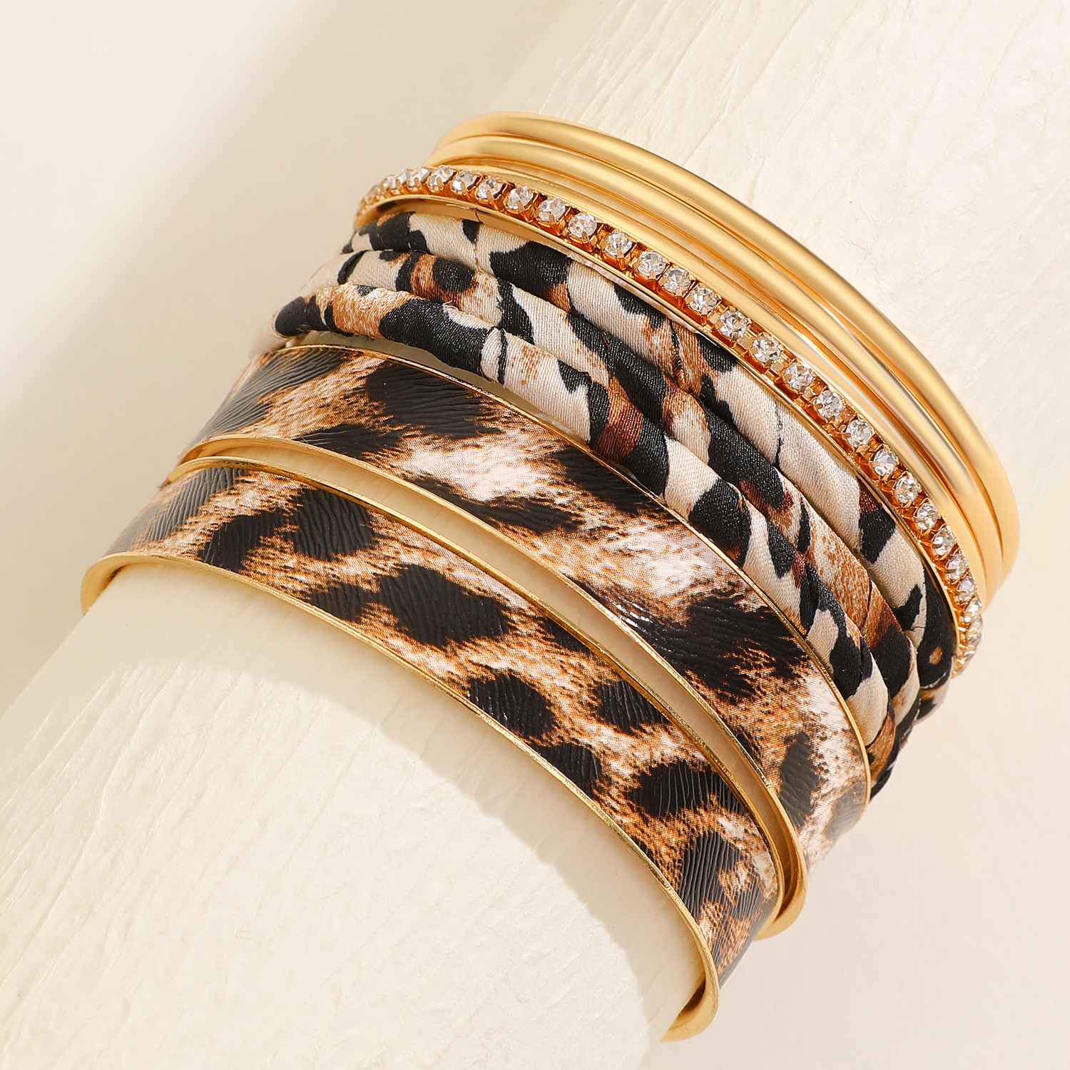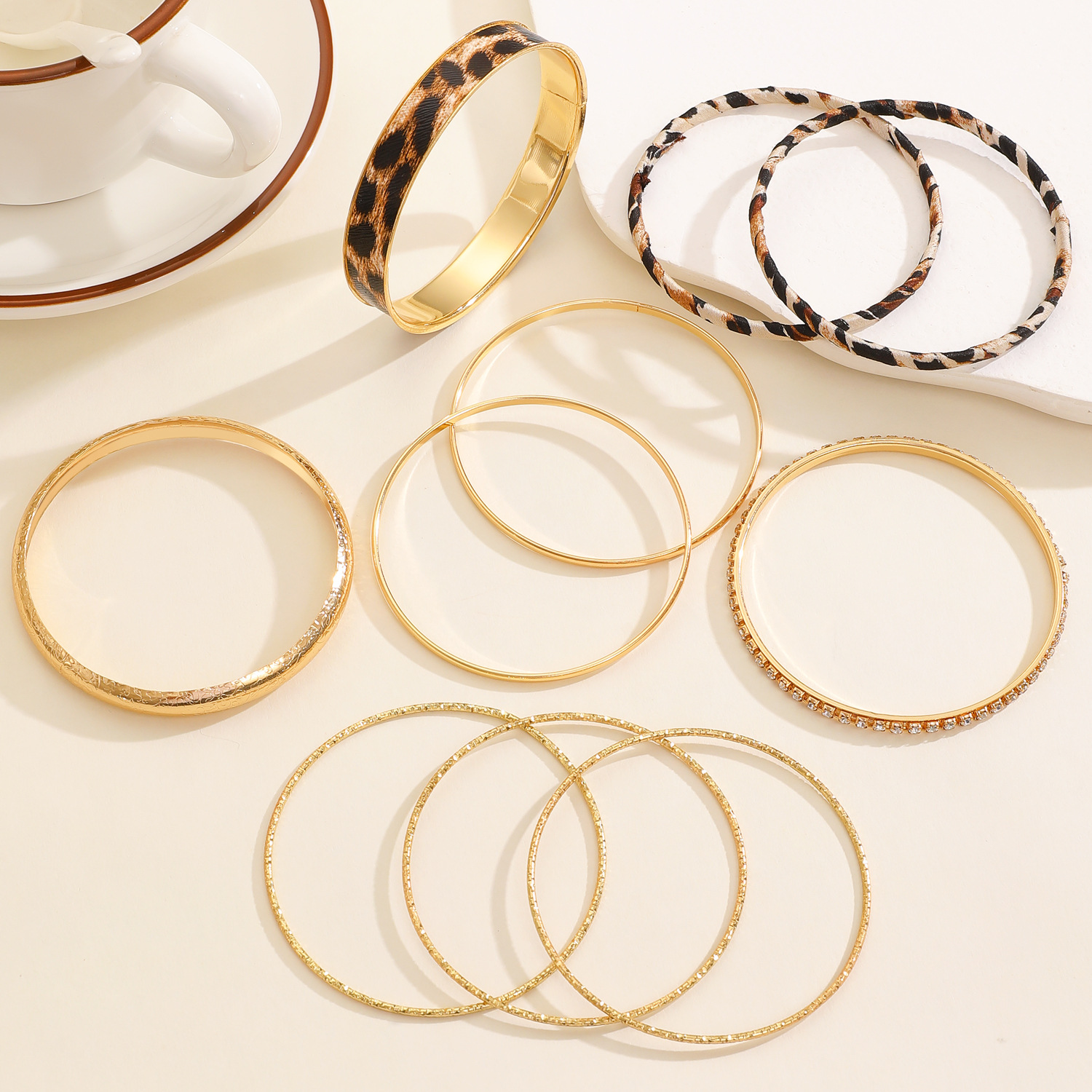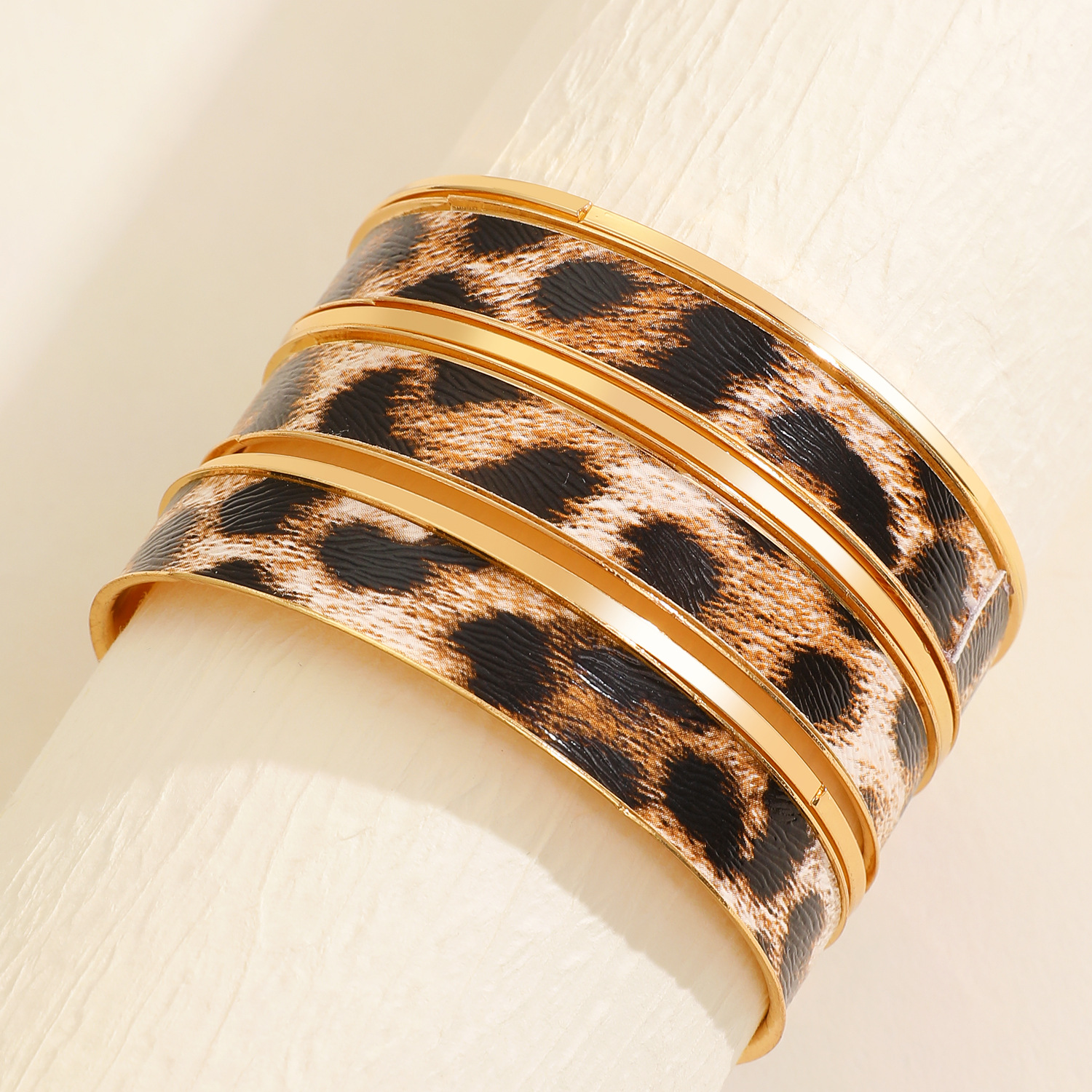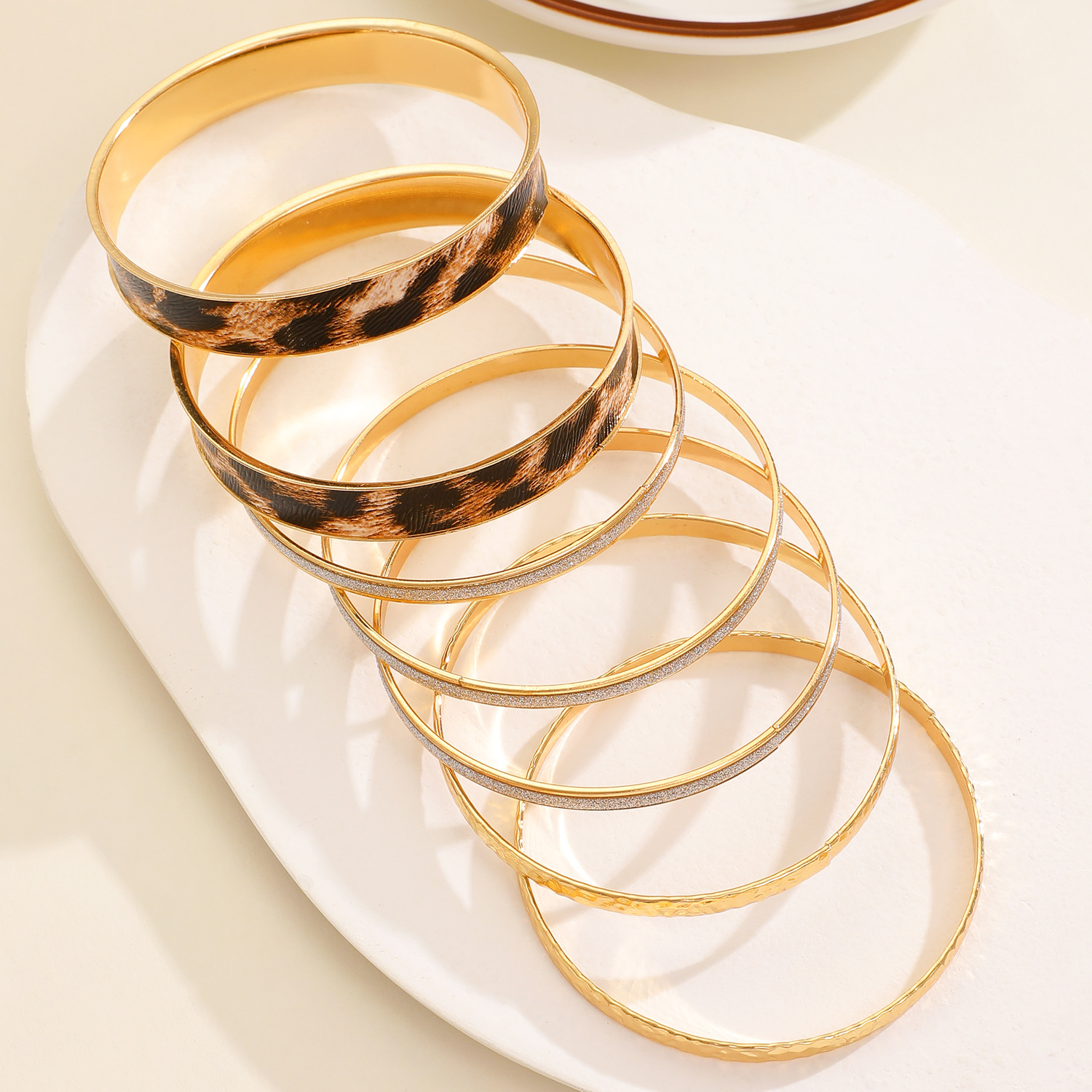 欧美跨境货源辣妹甜酷豹纹手镯光面叠戴手环套装街头潮流小众饰品