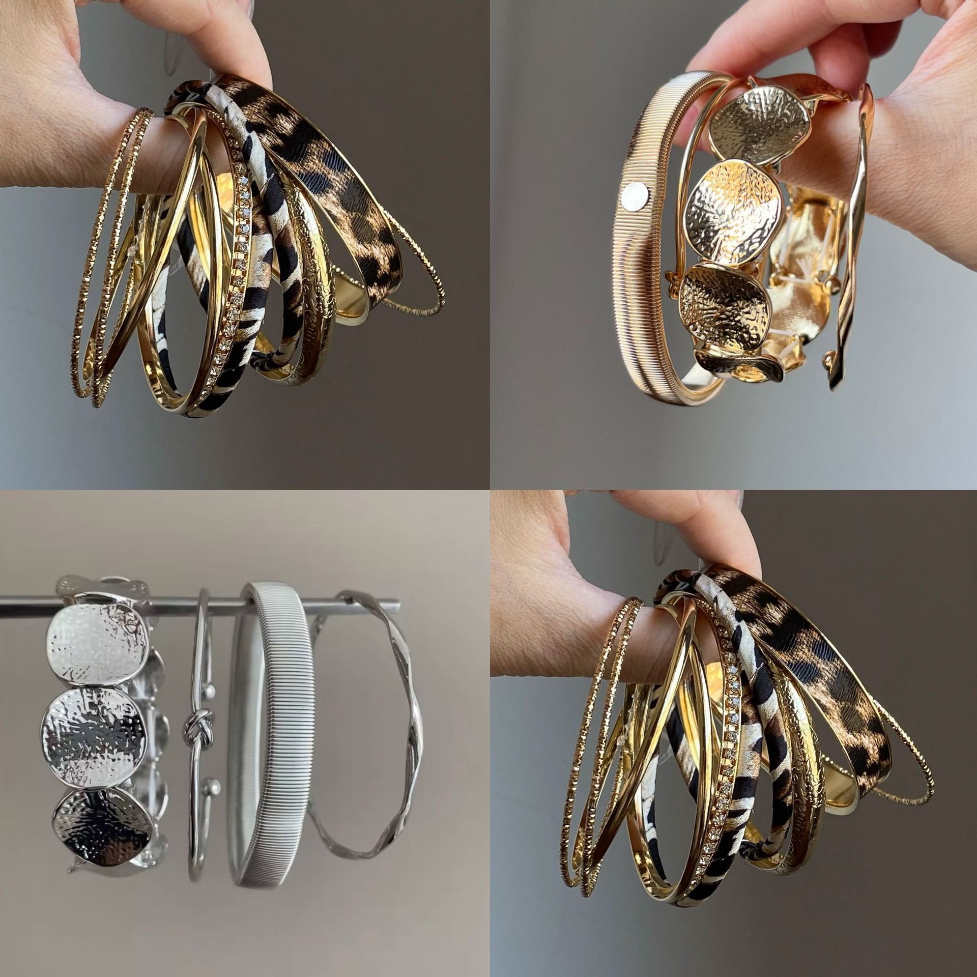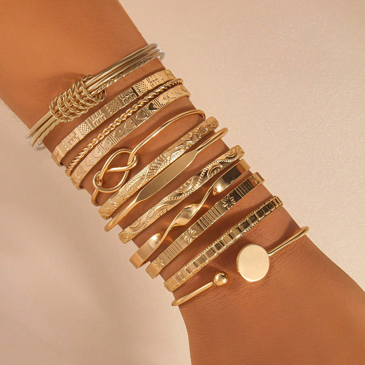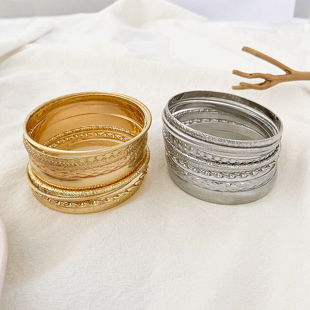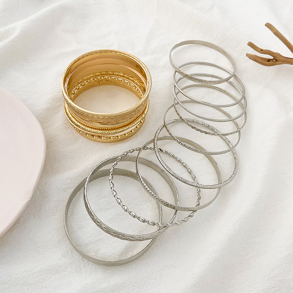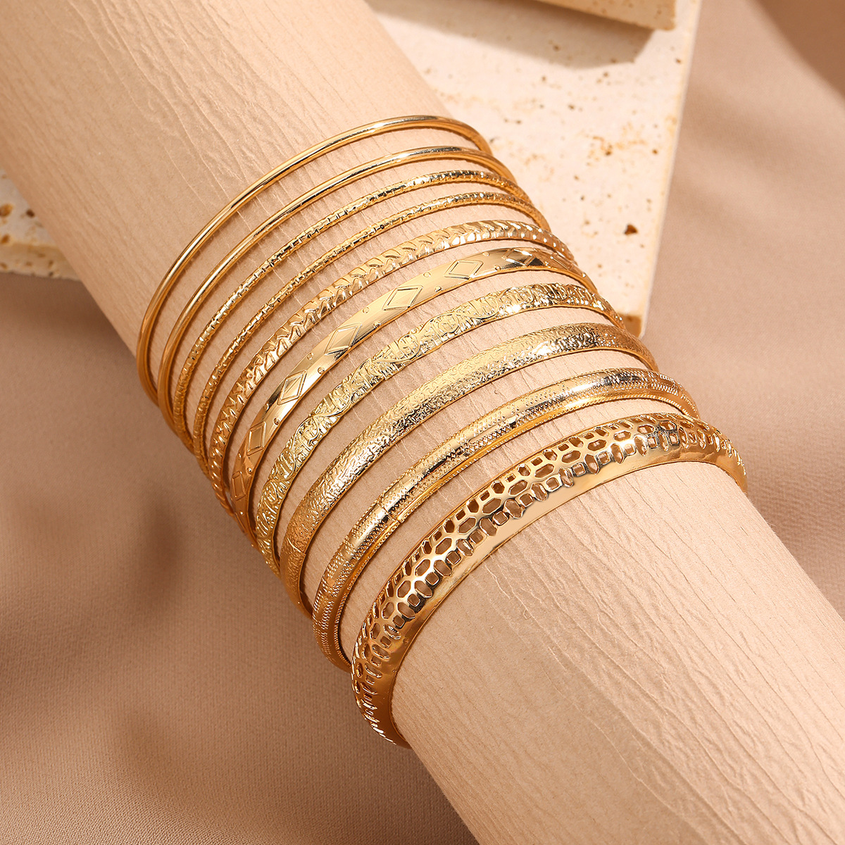 跨境热销几何图案金属手镯套装古法传承手链女式夏季高级感12件套