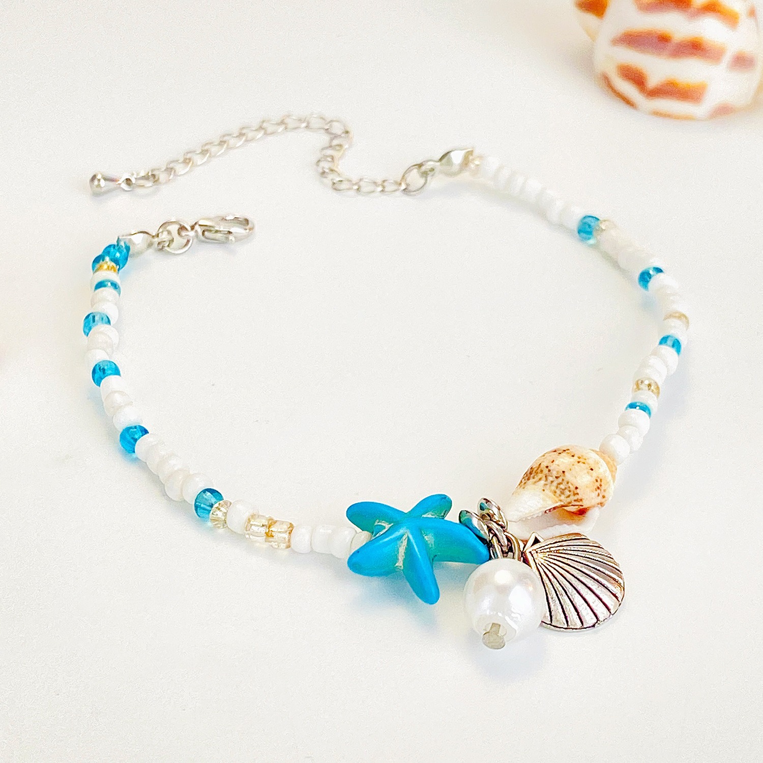 Amazon クロスボーダー ヨーロッパとアメリカ ボヘミアン スタイル ヒトデ シェル コンク ライス ビーズ アンクレット サマー ビーチ リゾート スタイル