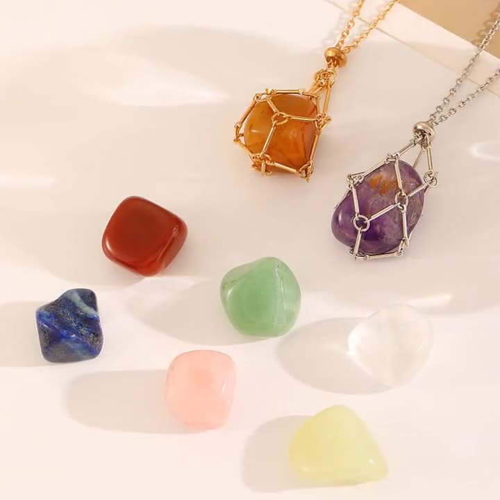 Ins小衆個性交換水晶原石ペンダント金属網兜編みネックレスアクセサリークロスボーダー新作