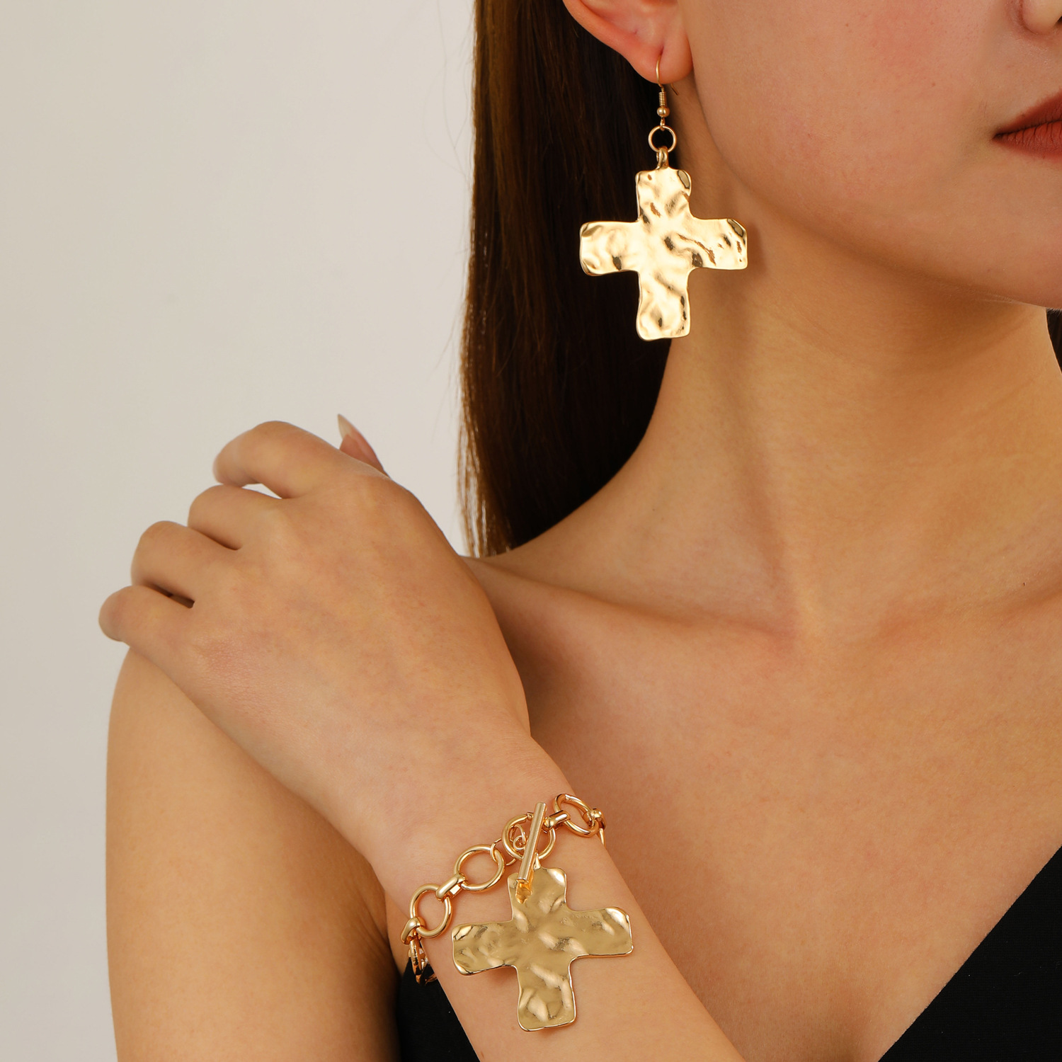 ヨーロッパとアメリカンスタイルのパーソナライズされたクロス合金イヤリングコールドスタイルシンプルなインターネットセレブ同じスタイルのブレスレット鎖骨チェーン女性用
