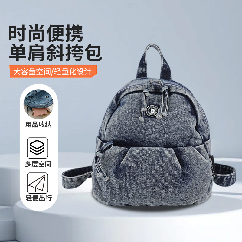 厂家供应水洗牛仔布背包时尚通勤早八小体积大容量双肩背包批发