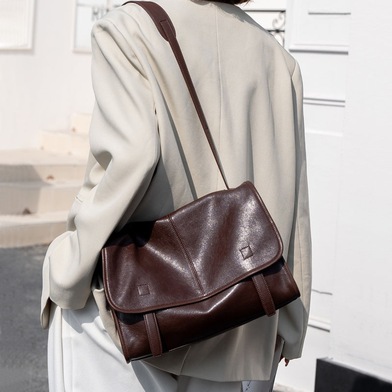 2026新款简约文艺复古邮差包头层植鞣牛皮单肩斜挎包百搭通勤女包