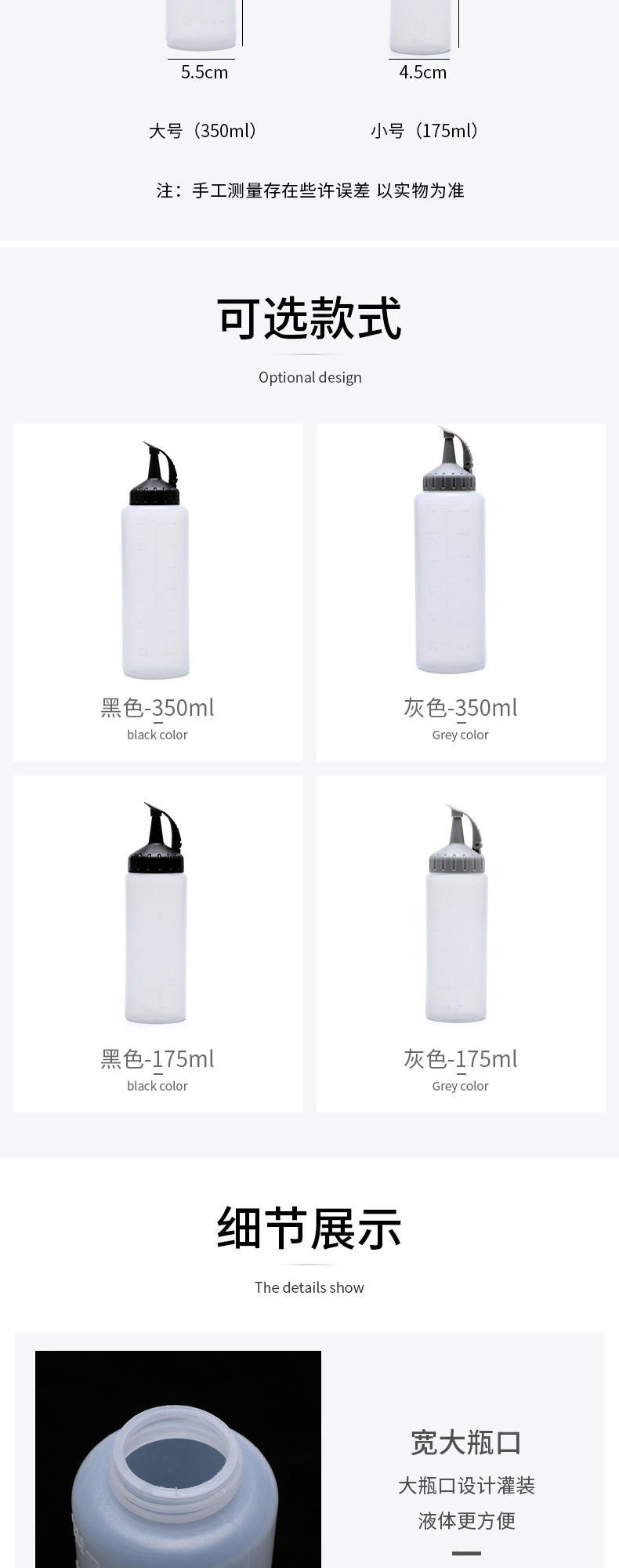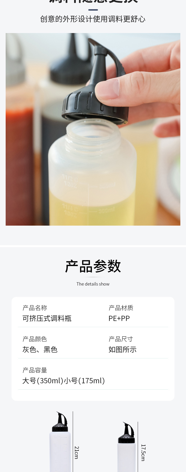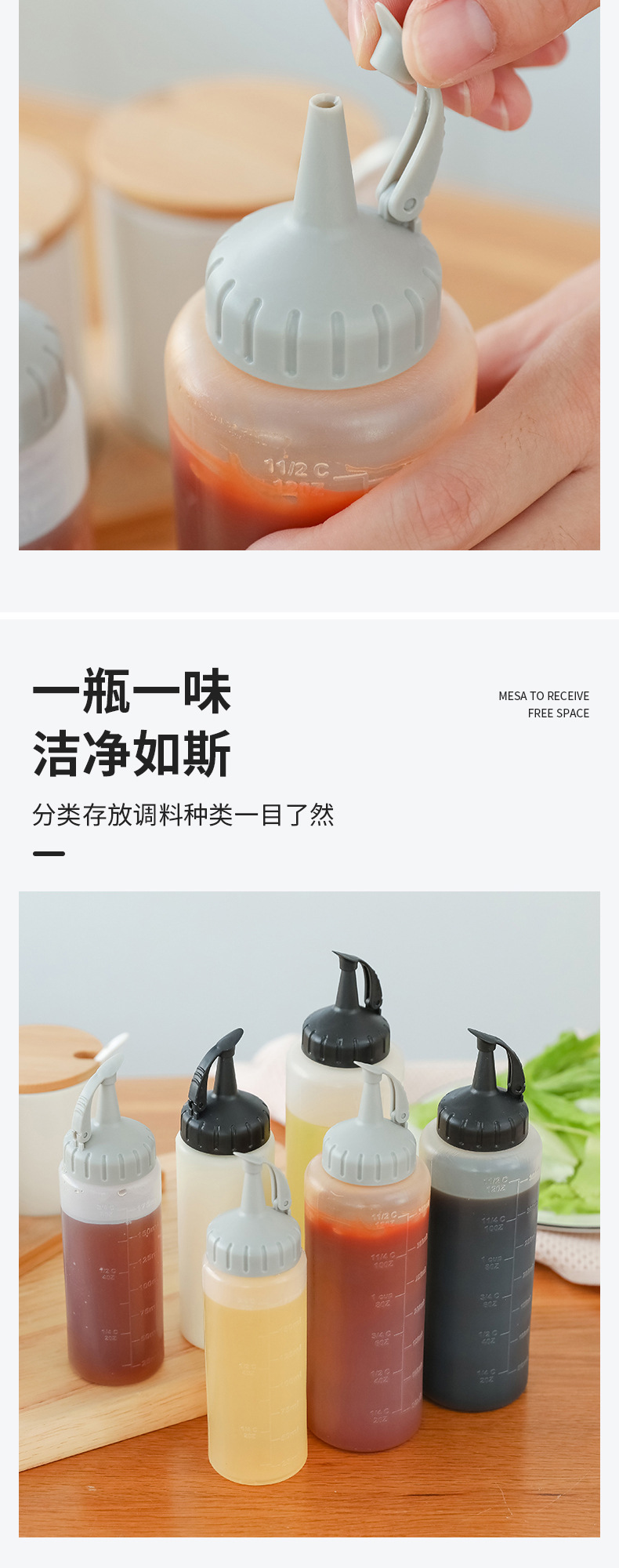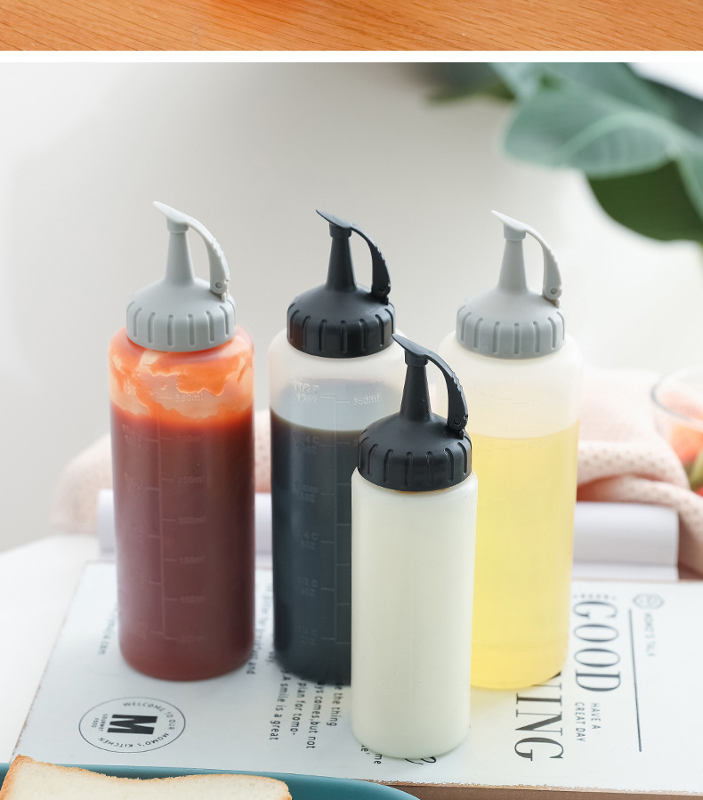 329プレス式絞り出しオイルボトル、目盛り付きプラスチック調味料ボトル、尖った口のジャムボトル、オイルポット、調味料入れ
