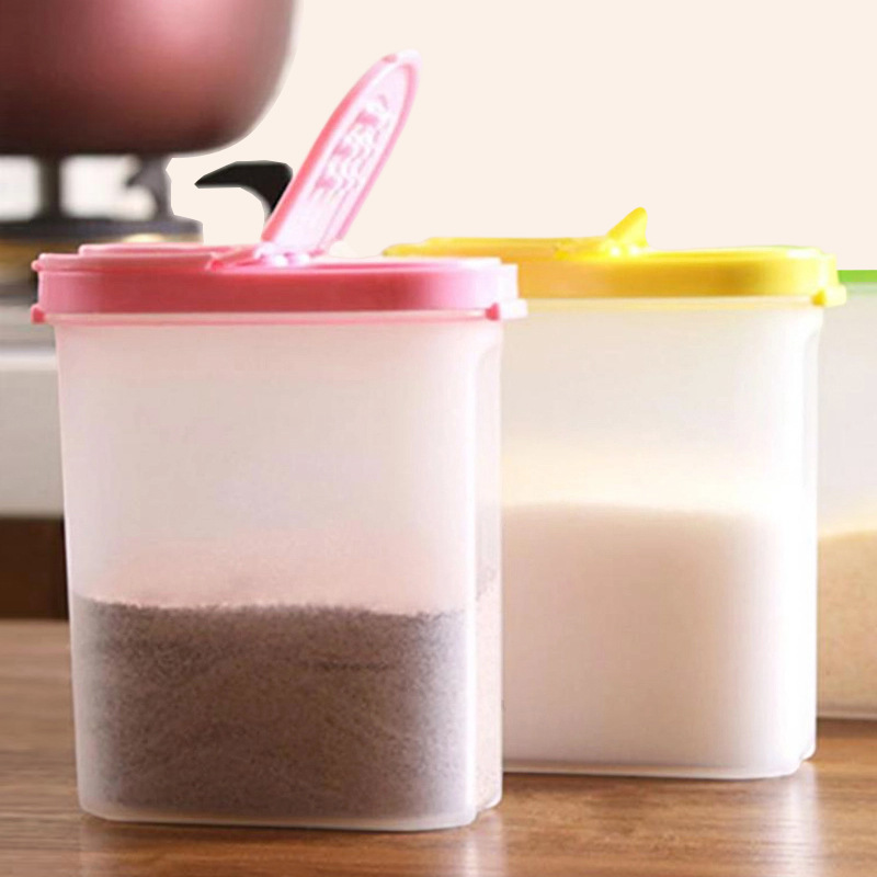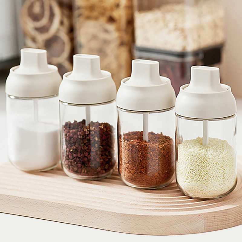 スプーン蓋一体調味料瓶密封調味料瓶ガラス塩缶キッチン家庭用大容量味の素砂糖調味料瓶